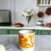 Très beau mug vintage ! Ce mug fait en Irlande a un joli motif fleuri vintage, avec de grosses fleurs de couleurs jaune & orange, rappelant les années 60-70. Tout ce qu’on aime pour passer un bon moment café ou thé avec ce mug qui deviendra votre nouveau chouhcou !