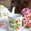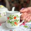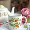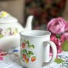 Un joli mug vintage en grès moucheté. Décoré d’un bouquet de fraises et fleurs de fraisiers, il sera parfait pour votre boisson chaude préférée !