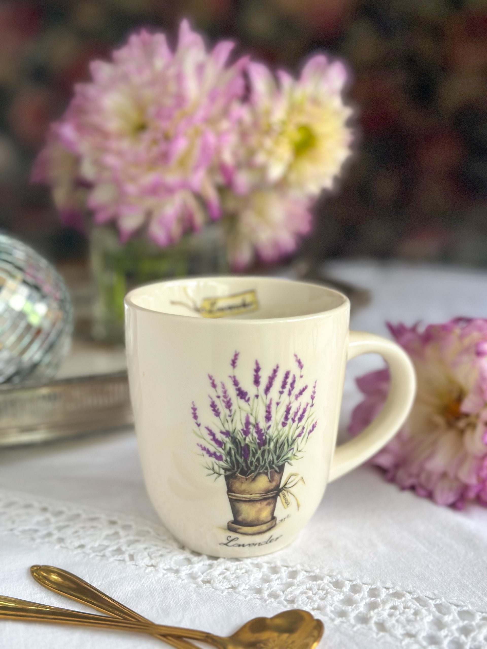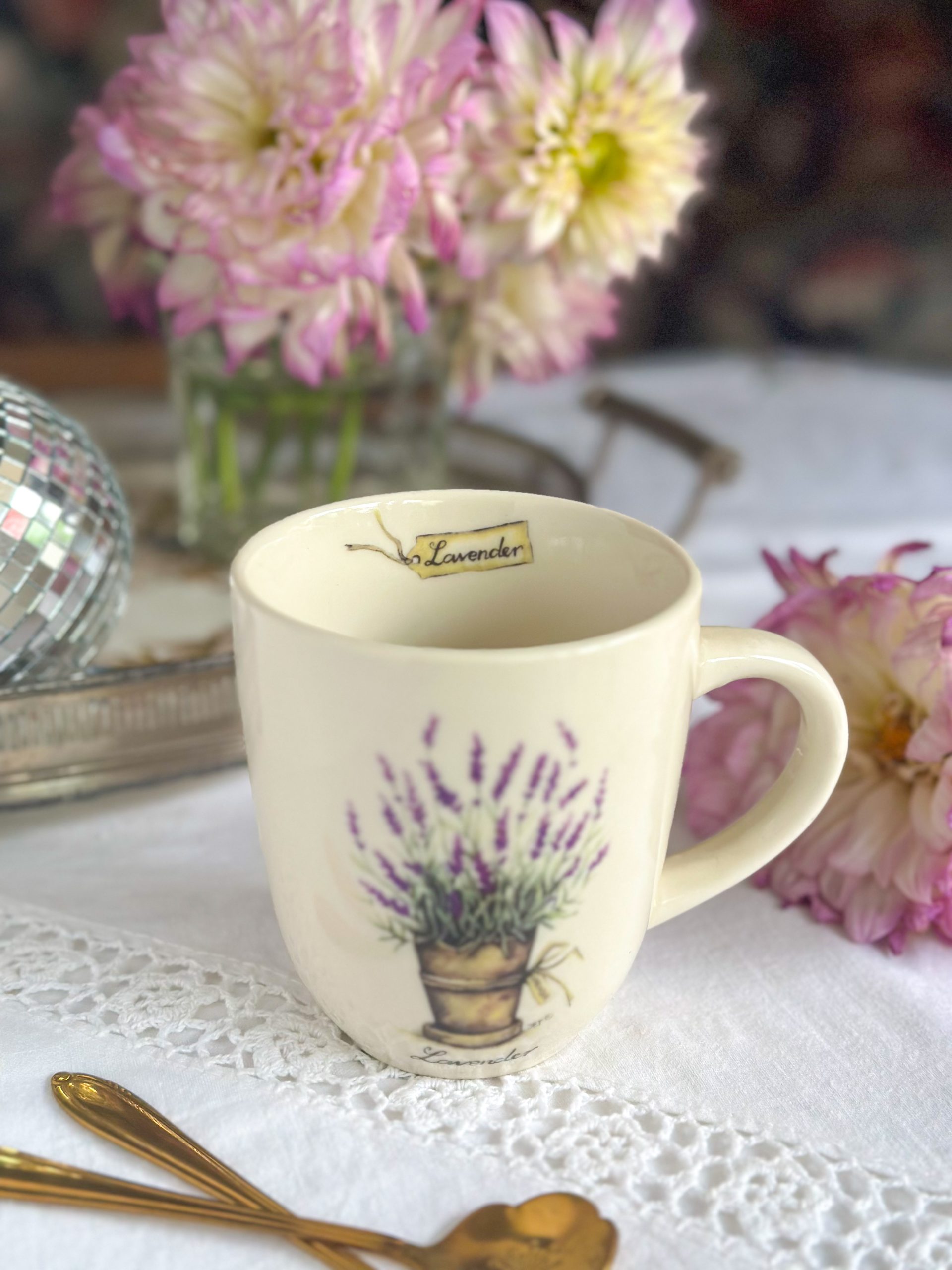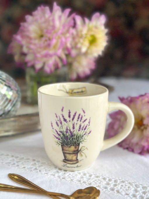 Un joli mug vintage ! On adore son dessin avec un pot de lavande. Avec sa jolie forme et sa céramique blanc cassé, ce mug sera parfait pour vos pauses thé ou café tout l’été !