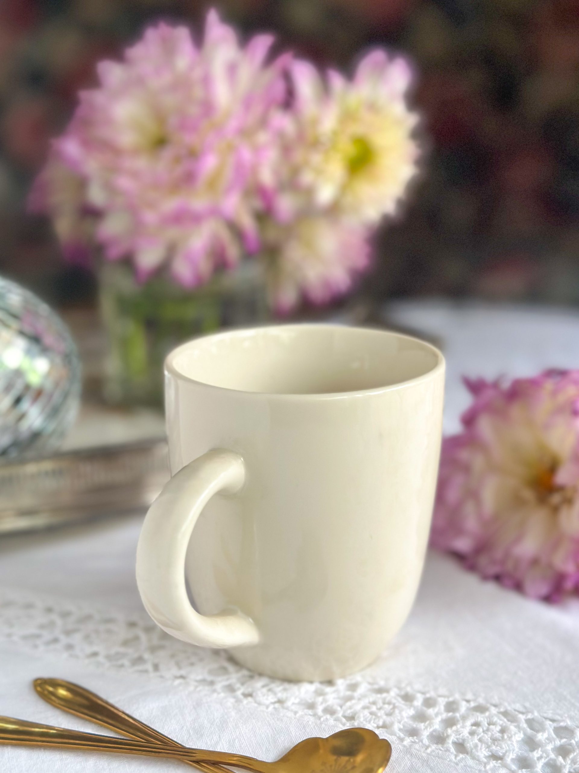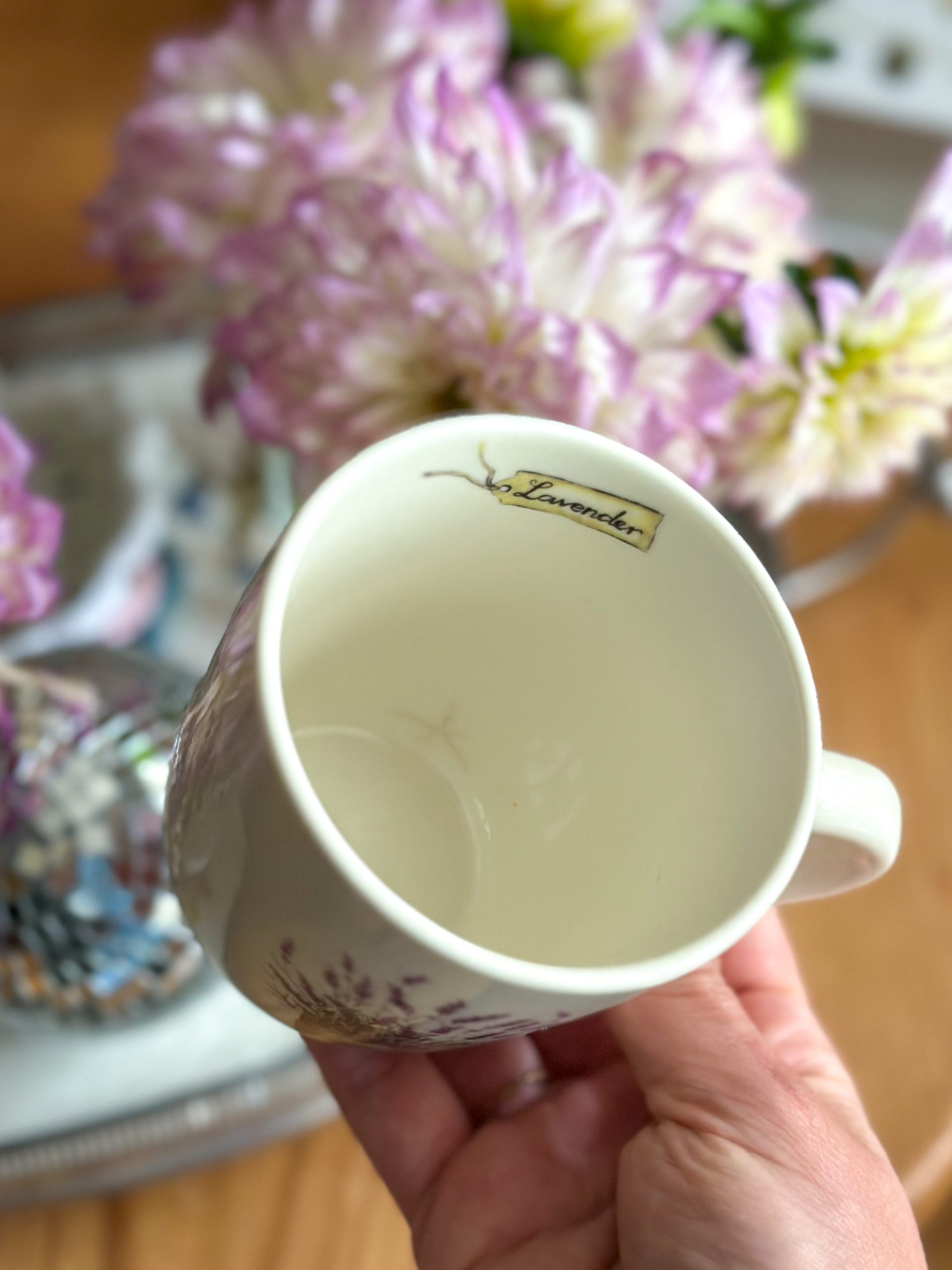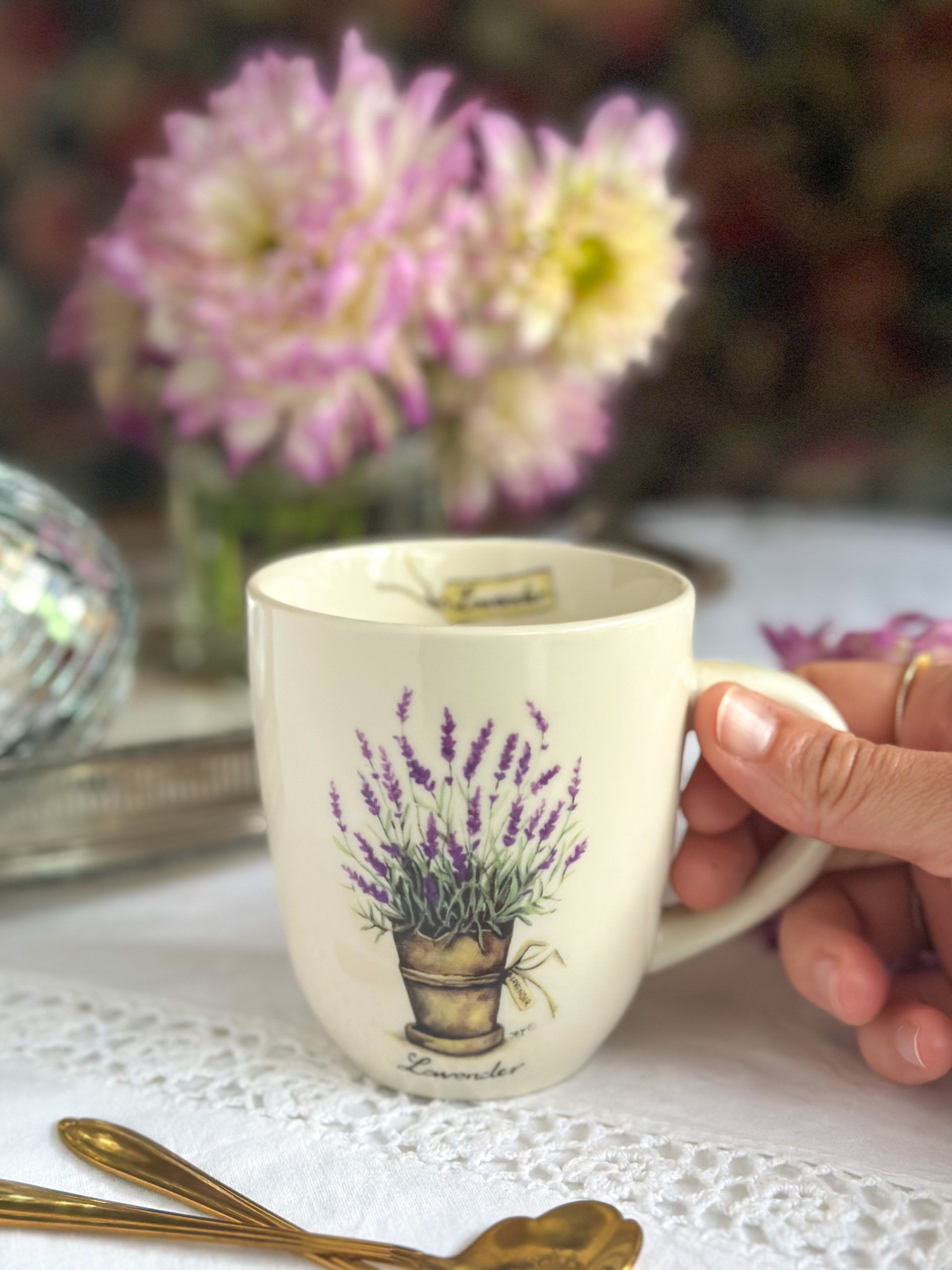 Un joli mug vintage ! On adore son dessin avec un pot de lavande. Avec sa jolie forme et sa céramique blanc cassé, ce mug sera parfait pour vos pauses thé ou café tout l’été !