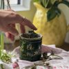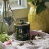Un très joli pot à thé en grès. On l’adore ! Il a une jolie couleur verte vernie et réhaussée de dorures et petites fleurs peintes.