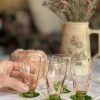 Enorme coup de cœur pour ce petit verre trop mignon ! En verre fin, il a une très belle couleur rosée, et avec son pied vert clair, il nous rappelle les fleurs. Bref c’est le verre parfait pour une déco de table printanière !