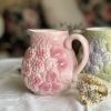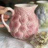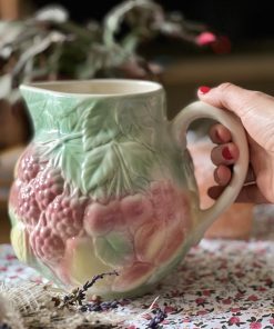Un très beau pichet en barbotine vintage ! Sa belle couleur rose et ses motifs fruits en font un indispensables pour vos tables de printemps/été.