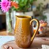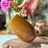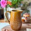 Magnifique pichet vintage ! Sa couleur automnale et son décor fougère en relief en fait un élément de décoration parfait pour une touche unique dans votre intérieur.