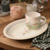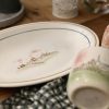 Plat vintage en céramique italienne aux tons doux et dessin village
