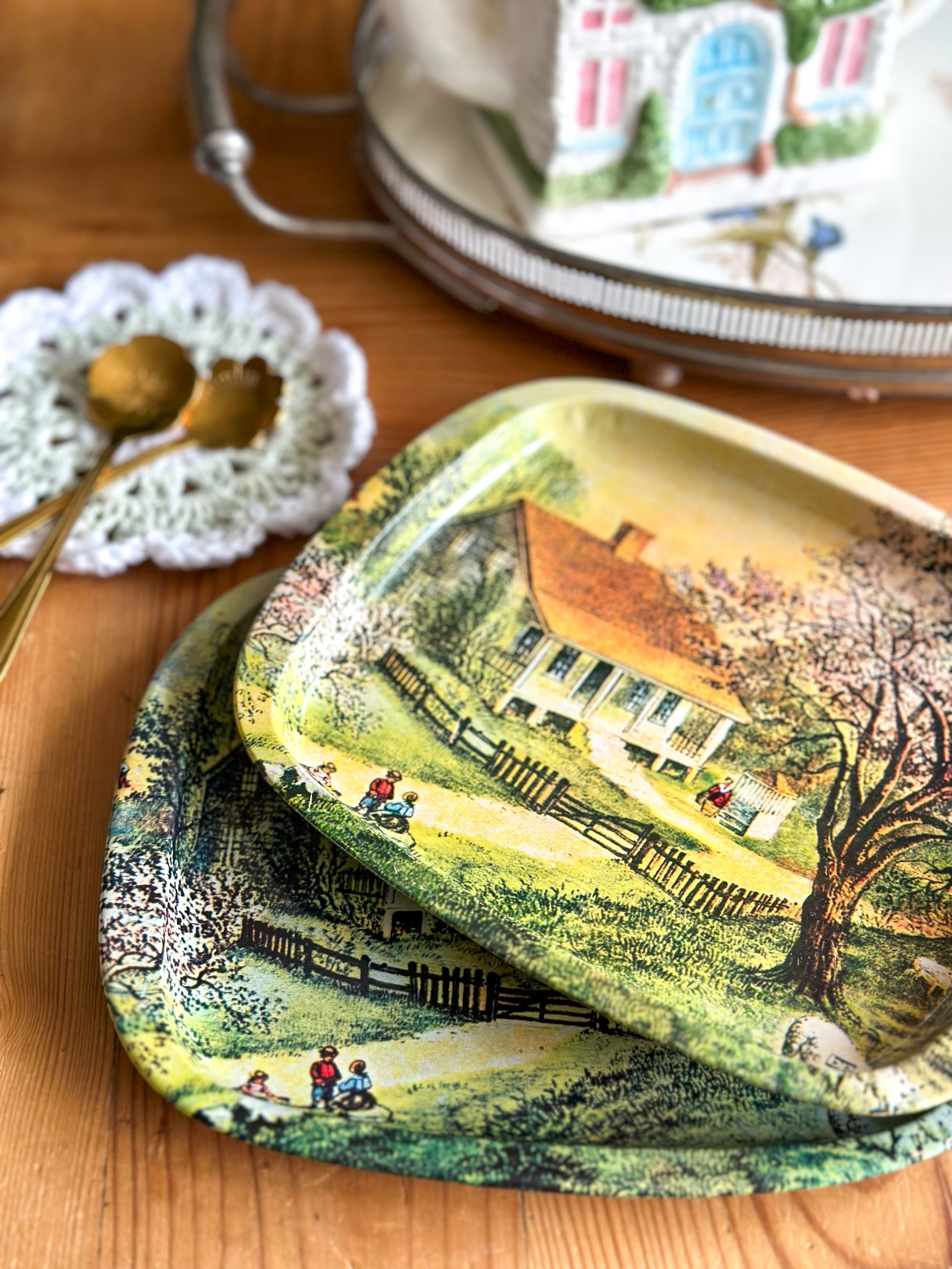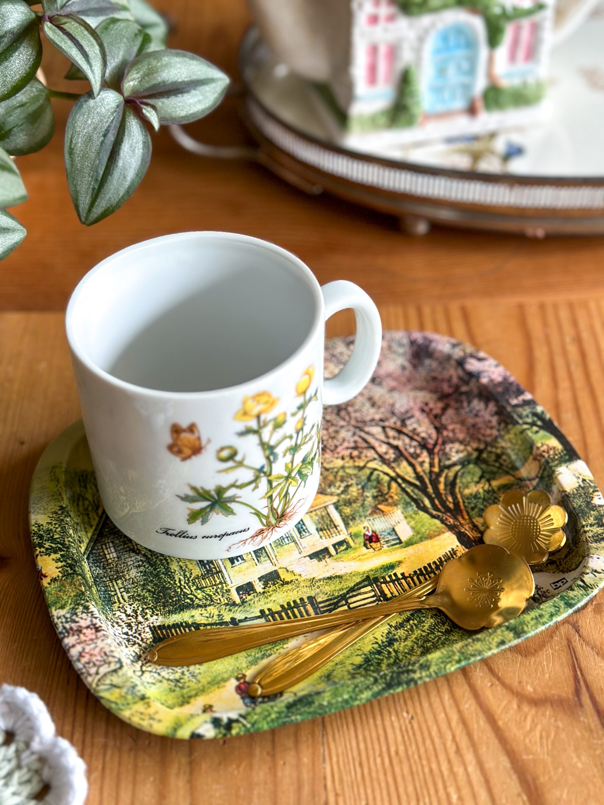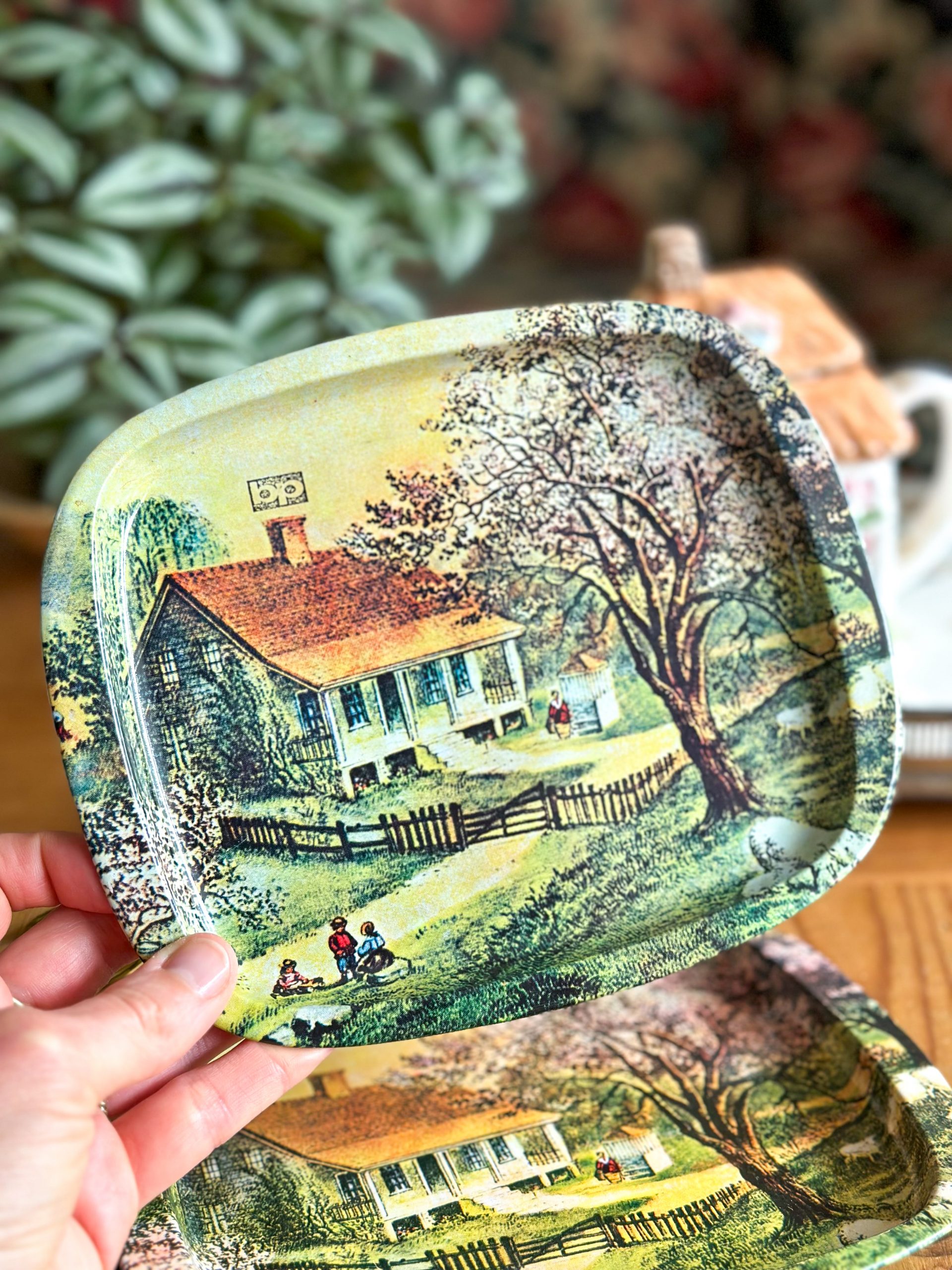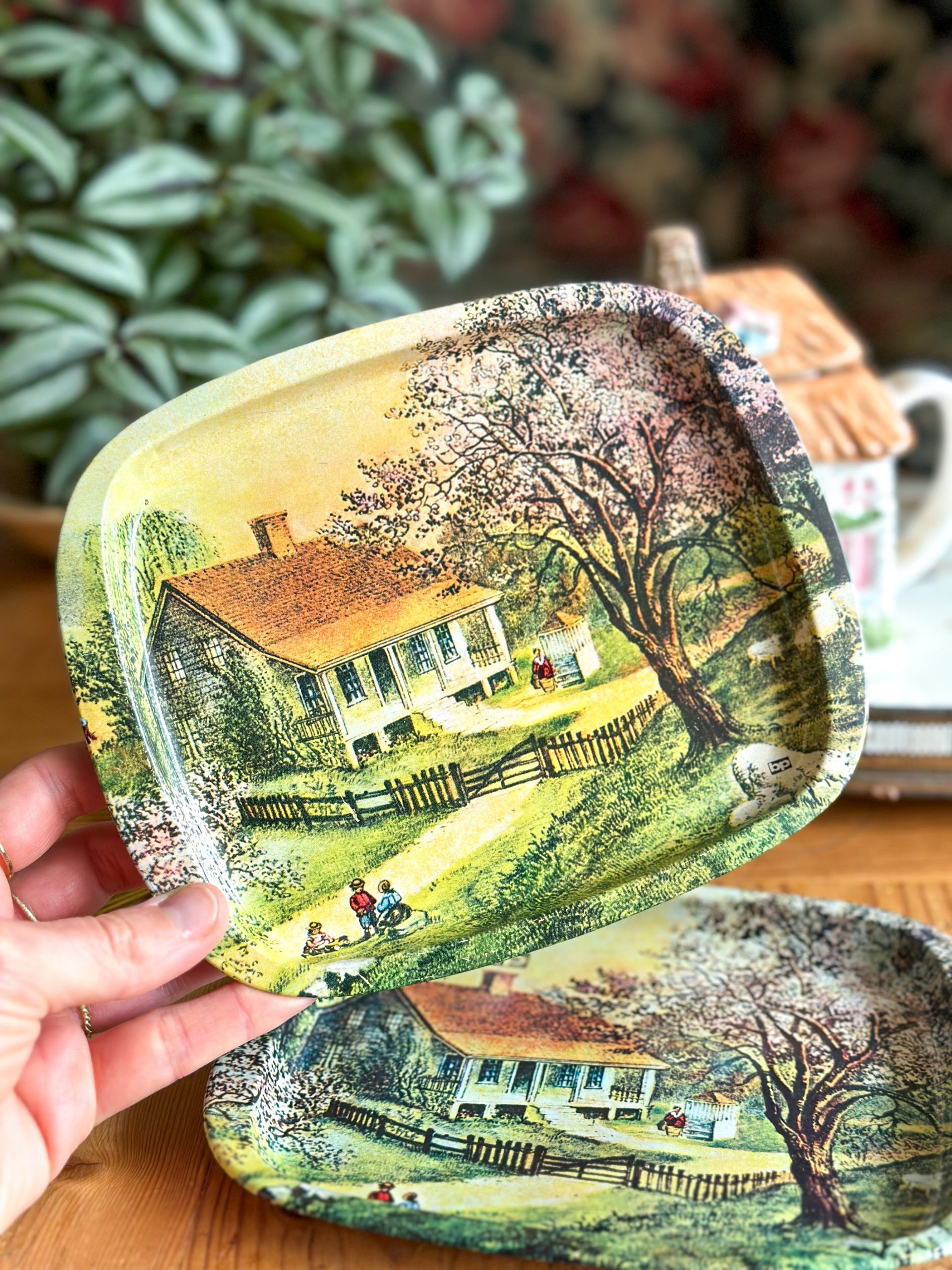 Un joli plateau en métal vintage ! Avec son petit format et son joli décor de campagne, il sera parfait pour y déposer votre mug et quelques gourmandises. Vous pourrez aussi l’utiliser comme vide-poches, ou comme petit plateau de cuisine, à vous de voir !