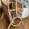 Ce très beau porte-revue en rotin vintage date des années 70. Il est en très bel état, aucun brin manquant.