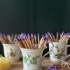 Cette tasse ou pot chiné accueille de belles allumettes à bout violet, pour en faire un élément déco aussi utile que joli ! Vous pourrez allumer vos plus belles bougies avec ses allumettes longues et son papier grattoir qui est collé dessous.