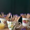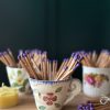 Cette tasse ou pot chiné accueille de belles allumettes à bout violet, pour en faire un élément déco aussi utile que joli ! Vous pourrez allumer vos plus belles bougies avec ses allumettes longues et son papier grattoir qui est collé dessous.