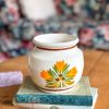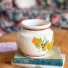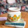 Un magnifique pot vintage ! On adore sa superbe céramique beige décorée de motifs verts, oranges et rouges, de belles couleurs chaudes parfaites pour cette saison d’automne.