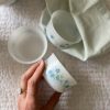 Ce très beau ramequin en Arcopal des années 60-70 est intemporel, avec son joli motif myosotis pour égayer votre table.