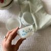 Ce très beau ramequin en Arcopal des années 80 est intemporel, avec son joli motif myosotis pour égayer votre table.