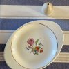 Très joli ravier ovale avec motif floral au centre et liseré doré