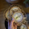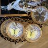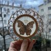 Chaque sous-verre est différent et fait en rotin, avec un papillon naturalisé (ailes de papillon et corps en papier). Un très bel ensemble qui pourra vous servir de sous-verre ou bien en décoration, à accrocher au mur !