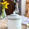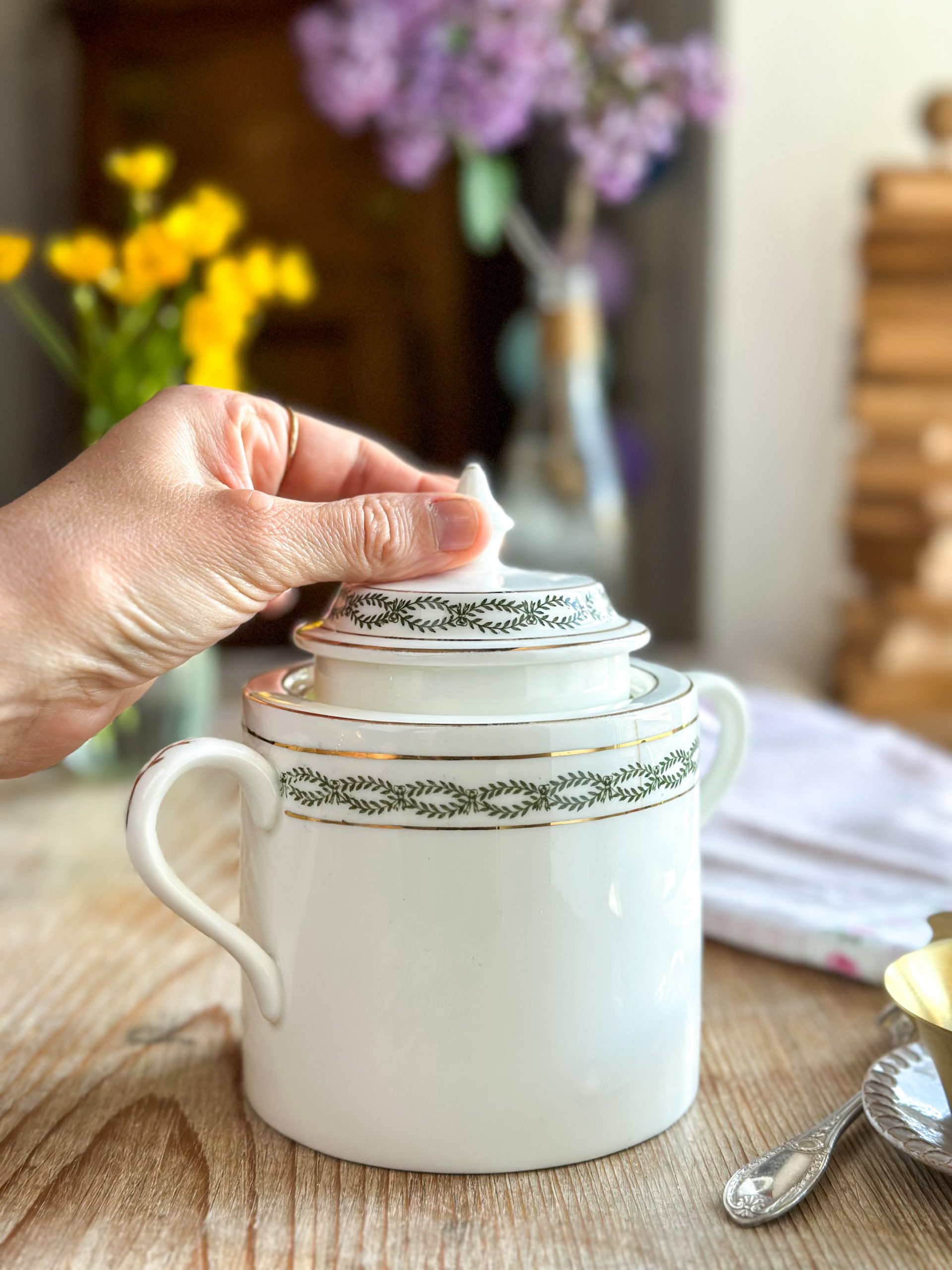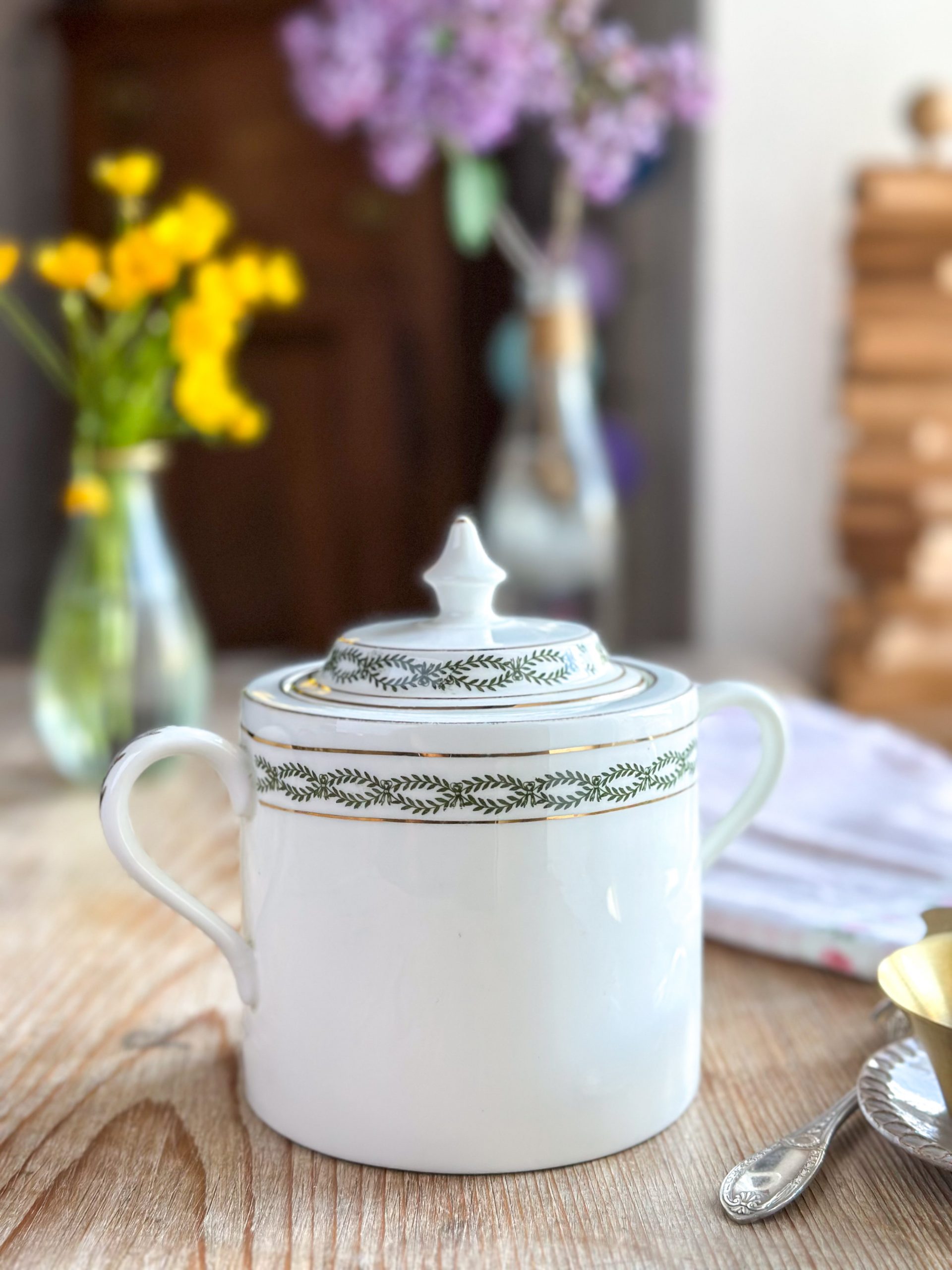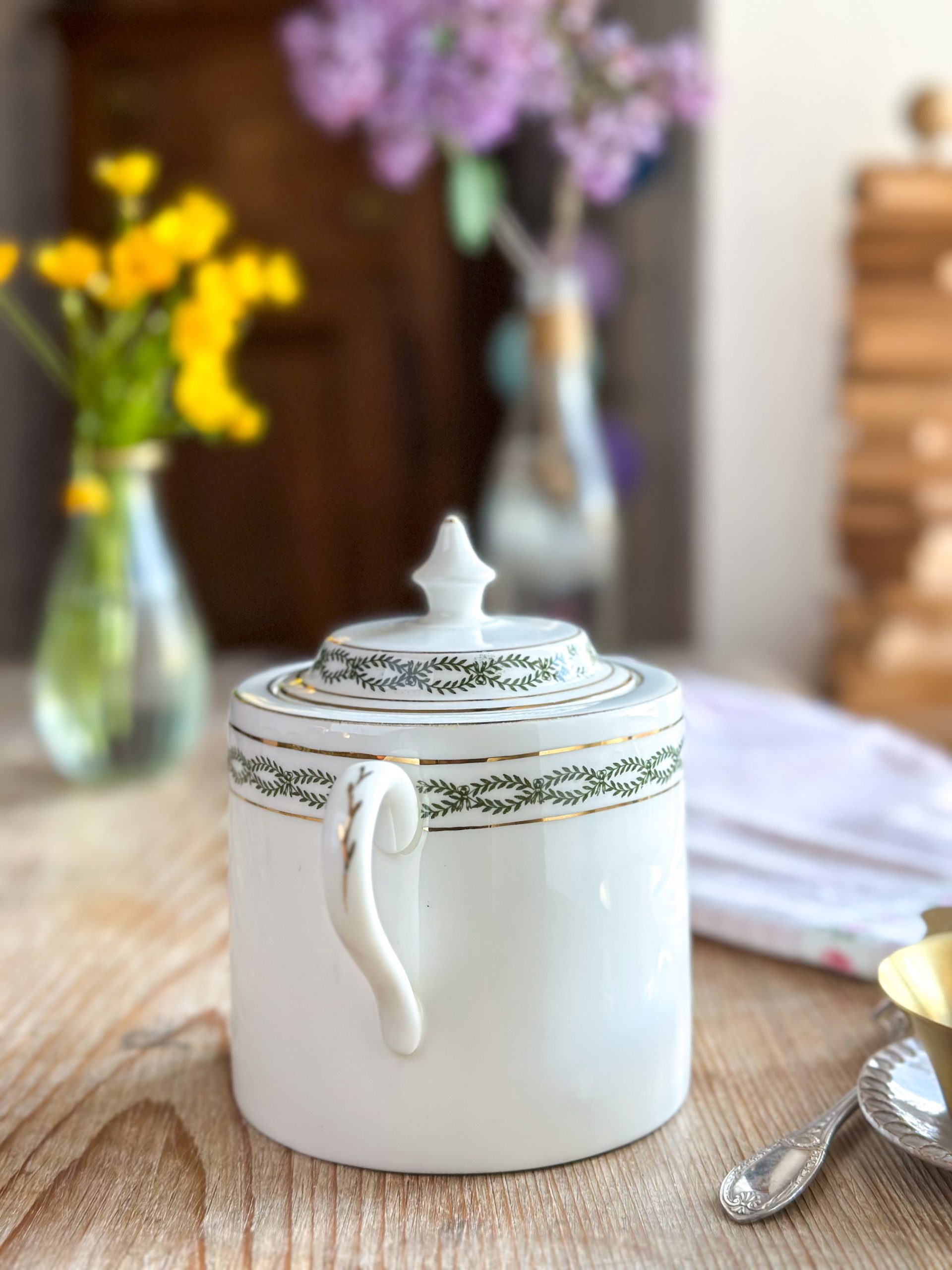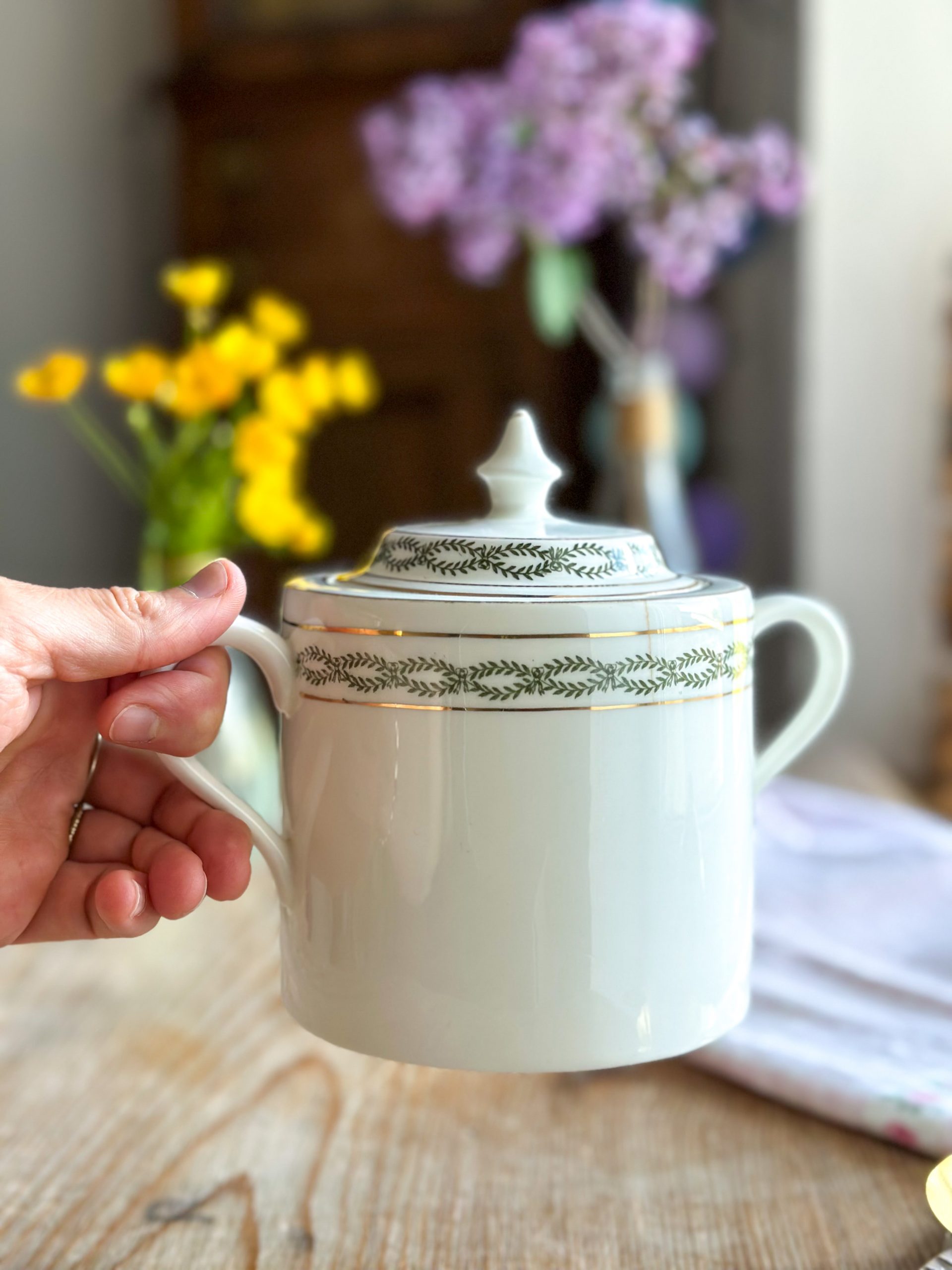Magnifique sucrier anglaise ! Assorti à la théière du même modèle, ce sucrier « Seine » est tout en élégance avec sa porcelaine fine anglaise. Décoré de festons verts et liserés dorés, ce sucrier sera parfait pour un teatime raffiné et tout en douceur.