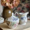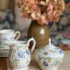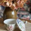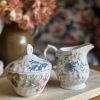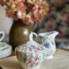 Un très beau sucrier en porcelaine anglaise ! On aime beaucoup son joli motif fleuri, à la fois délicat et coloré. Avec son joli couvercle, ce sucrier a une très belle porcelaine travaillée et à effet torse.