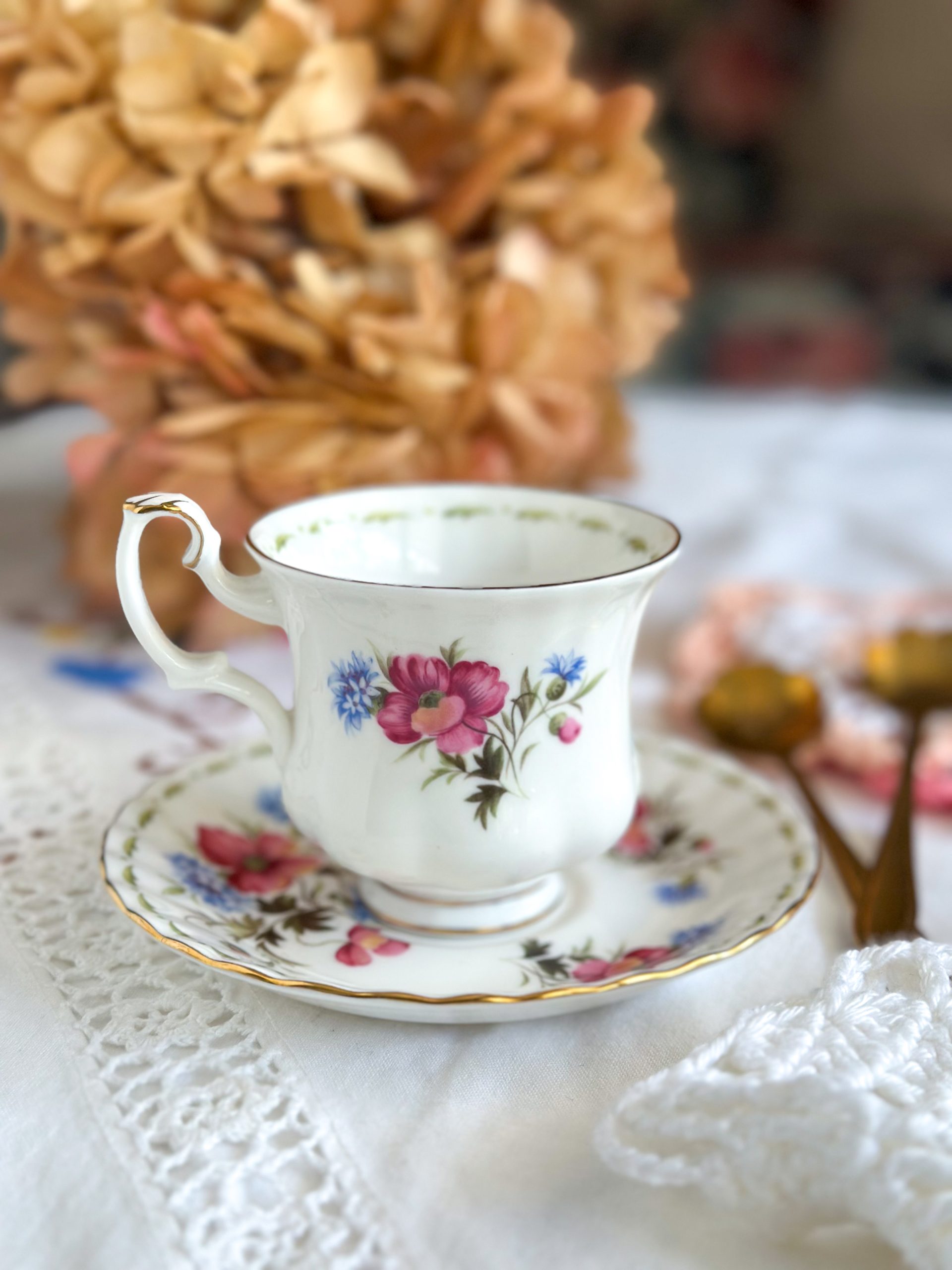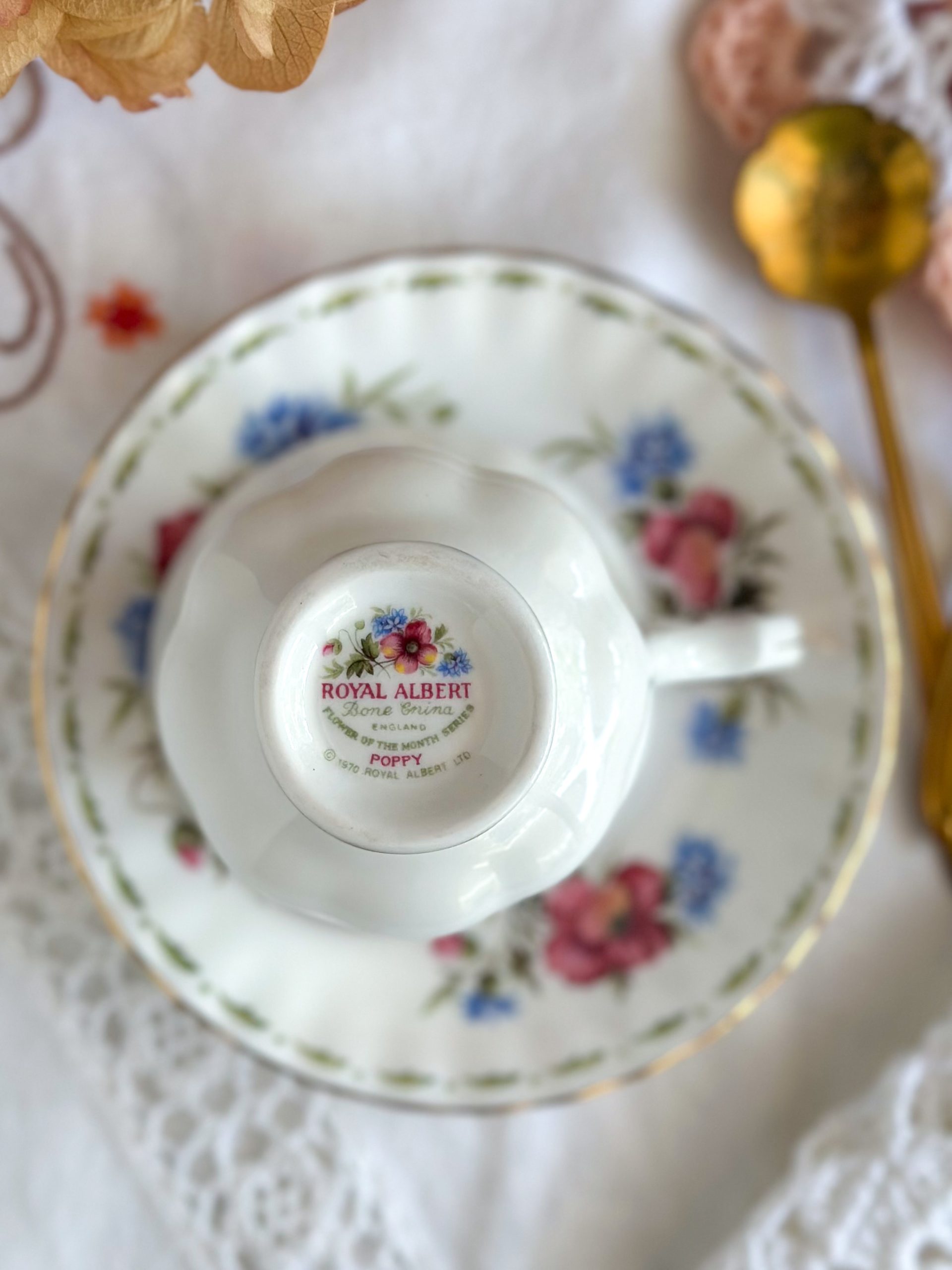 Elle fait partie de la collection « Flower of the Month » de la manufacture anglaise Royal Albert. Un véritable coup de coeur pour cette collection vintage datée 1970.