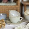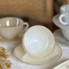 Cette magnifique tasse à café Arcopal des années 60 est en verre Opale irisé. Sa douce couleur nacrée soulignée d’un liseré doré lui donne énormément de charme. Un modèle vintage indémodable !