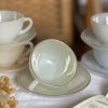 En bel état, les liserés dorés sont marqués par le temps et un peu effacés selon les tasses.
