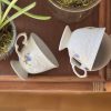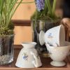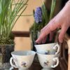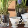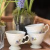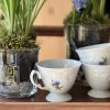 Cette belle tasse à café est remplie de charme : elle a un joli pied, sa anse est travaillée, et sa porcelaine fine est toute en relief. Elle est réhaussée de petites fleurs bleues et roses qui lui donnent encore plus d’élégance.