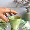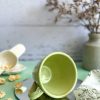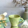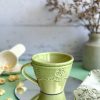 Jolie tasse à café en porcelaine verte ! On aime beaucoup sa forme évasée avec son joli décor fleuri et festonné. Une tasse qui égaiera votre intérieur pour de belles pauses café !