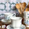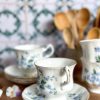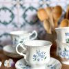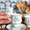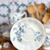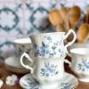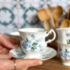 Magnifique tasse en porcelaine anglaise ! On adore ses dessins de myosotis, si doux et poétiques. Cette tasse à café est très élégante avec ses liserés dorés et sa sous-tasse assortie.