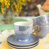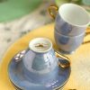 Superbe tasse à café en porcelaine fine ! Cette tasse vintage signée Country Corner est si élégante avec sa couleur bleue irisée et ses dorures. Une tasse parfaite pour une pause douceur et cosy.