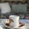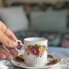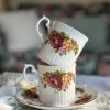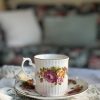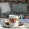 Une superbe tasse à café en porcelaine anglaise ! Cette tasse vintage a un superbe motif composé de bouquets de roses jaunes et roses. On adore la finesse et l’élégance de sa porcelaine striée ! C’est la tasse parfaite pour un joli moment café plein de poésie.
