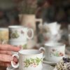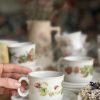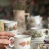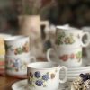 Une jolie tasse à café vintage aux décors fruits et papillons. Cette tasse existe en 4 versions différéntes, avec chacune sa sous-tasse assortie : mûres, framboises, fraises, baies.