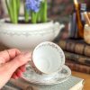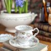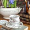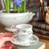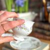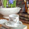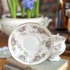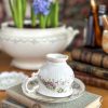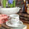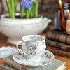 Coup de cœur ! Cette tasse Chantilly en porcelaine anglaise est notre coup de coeur de la semaine, avec ses magnifiques motifs floraux mauves et violets, aux tons si doux. On adore la finesse de sa porcelaine et l’élégance de sa forme sur pied. Sa anse avec dorures est magnifique.