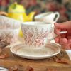 Une superbe tasse à thé vintage ! On aime beaucoup la douceur de sa couleur beige, réhaussée par ses motifs de fleurs et blés marrons. Une tasse à thé parfaite pour accompagner vos moments thé tout au long de l’automne.