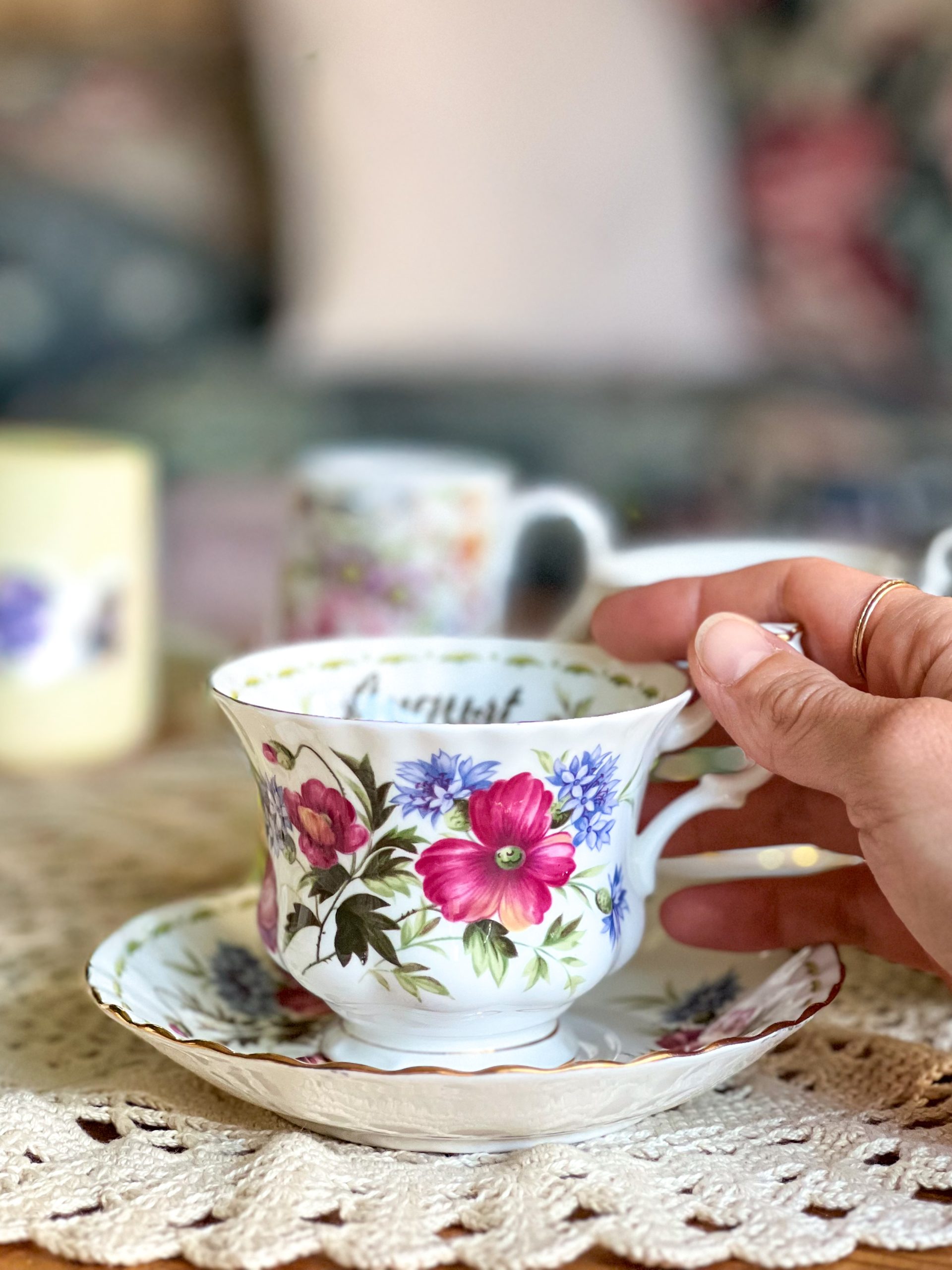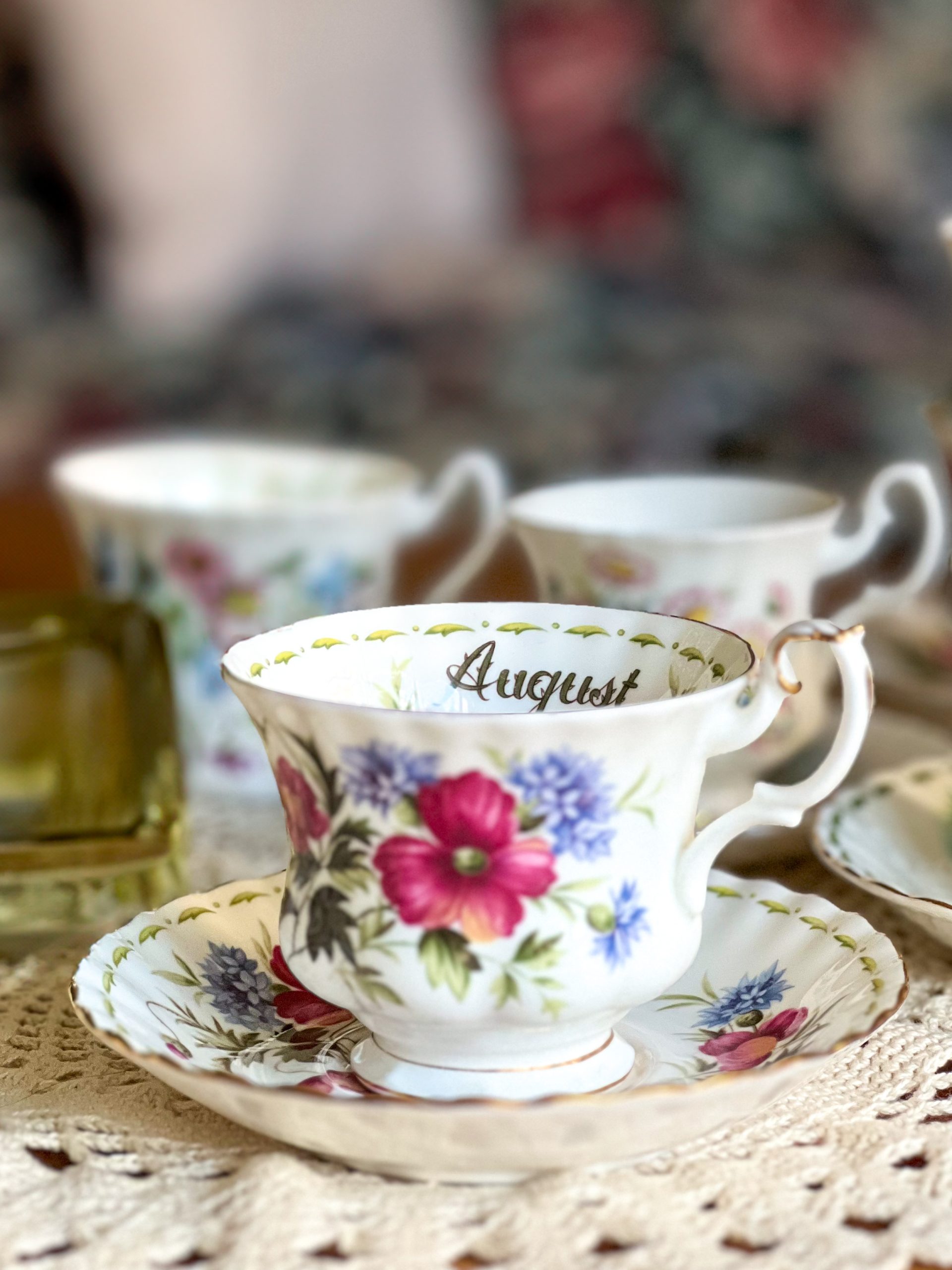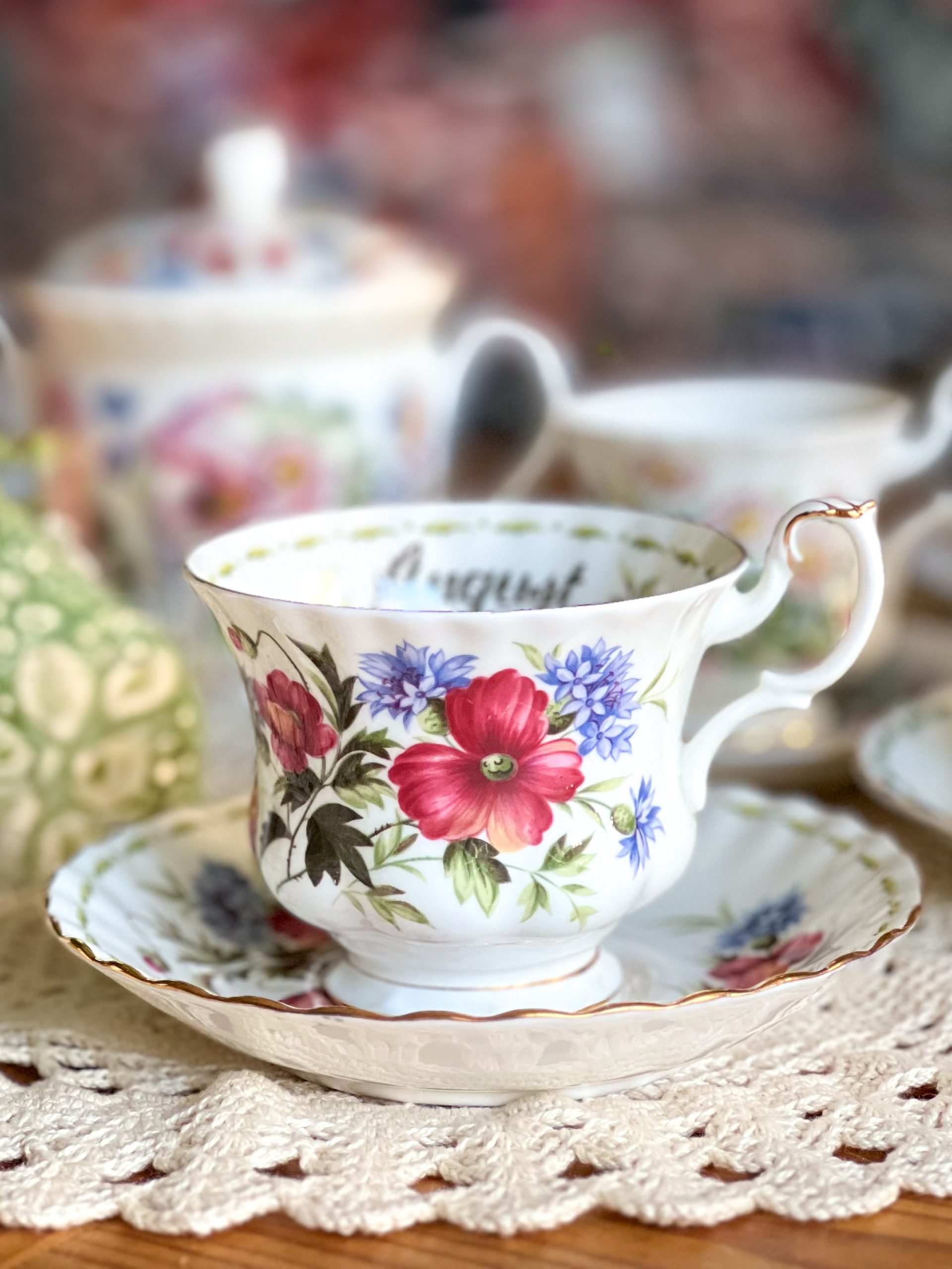 La tasse Royal Albert du mois d’Août de la série « Flower of the Month ».