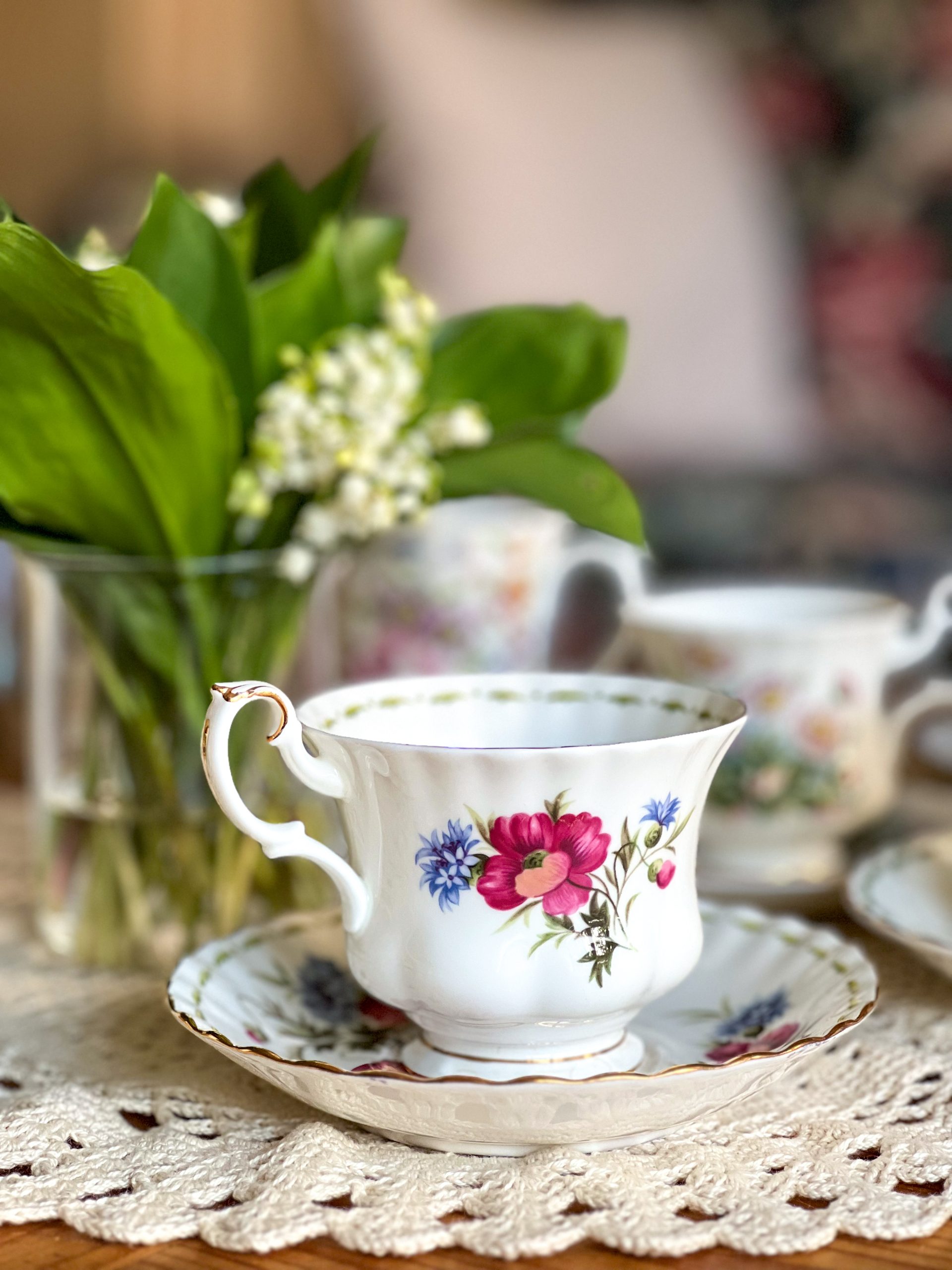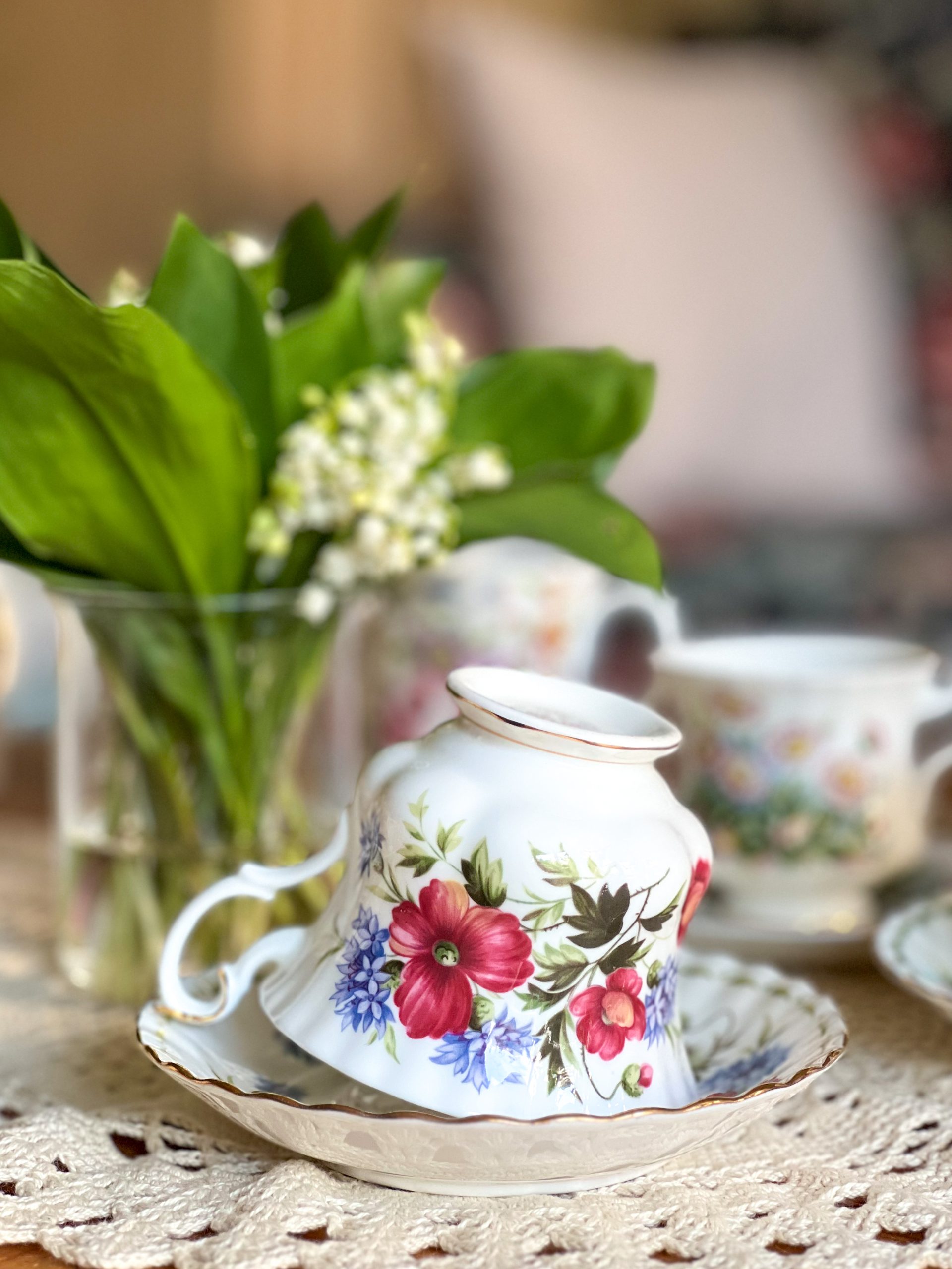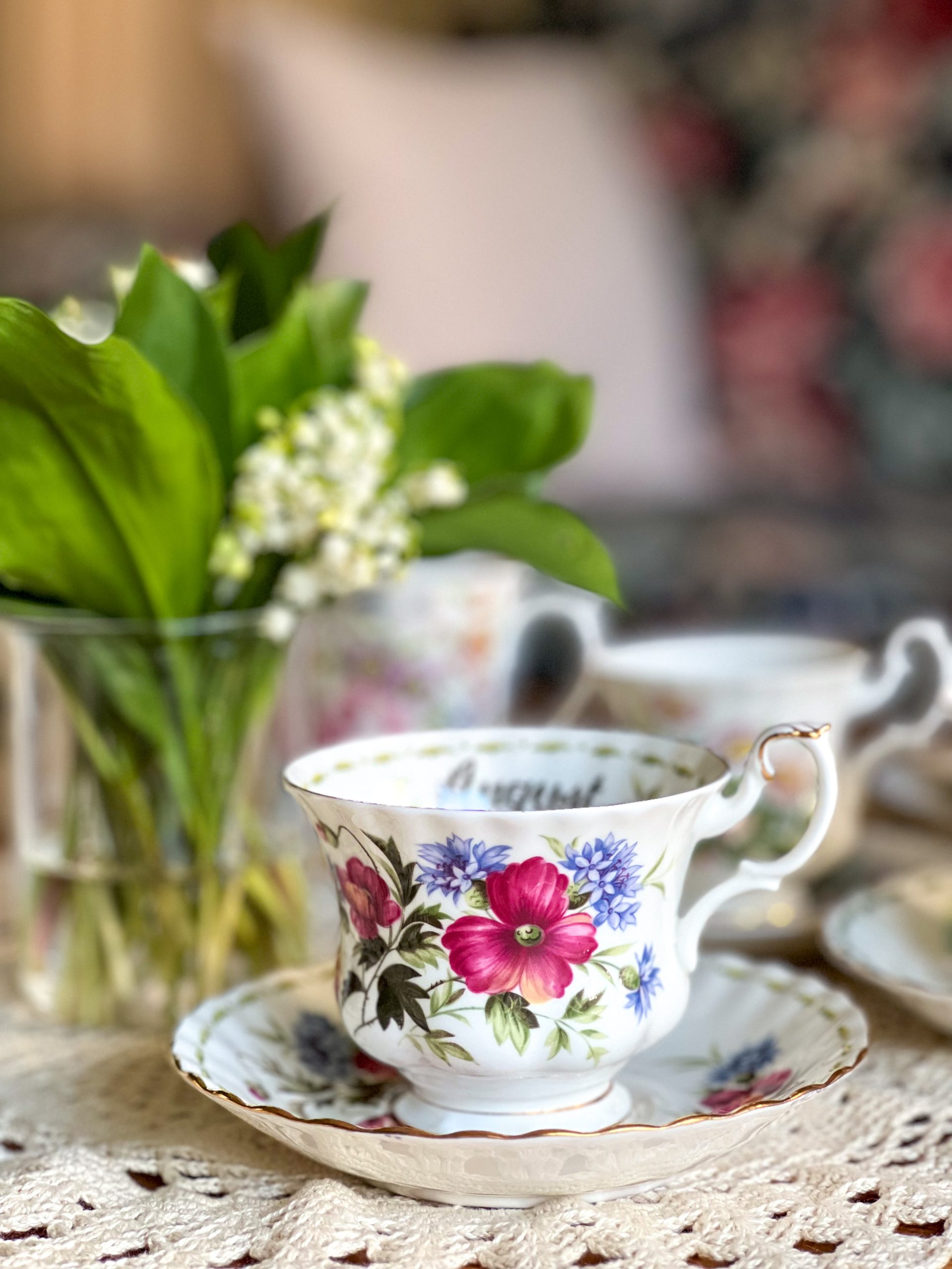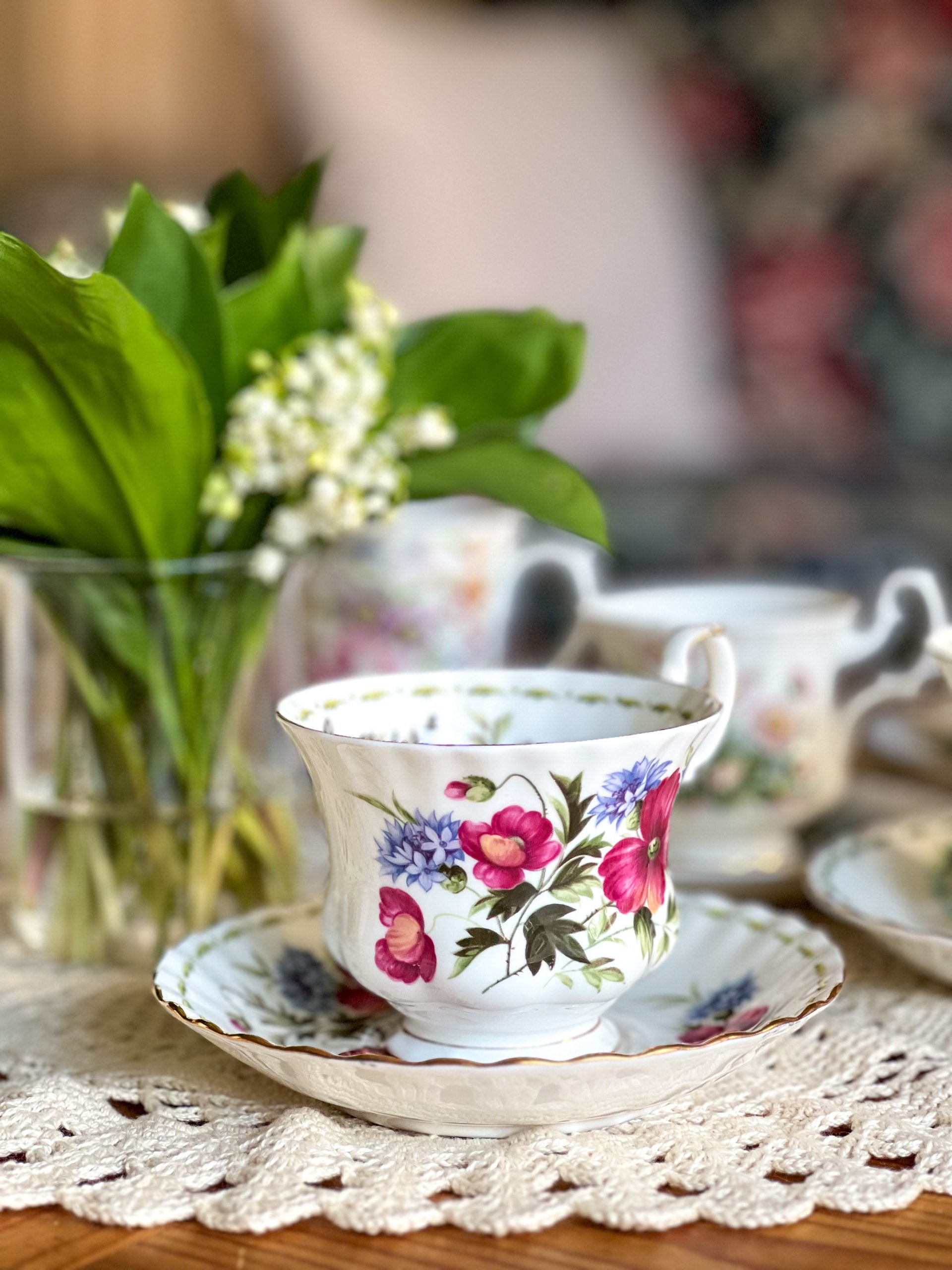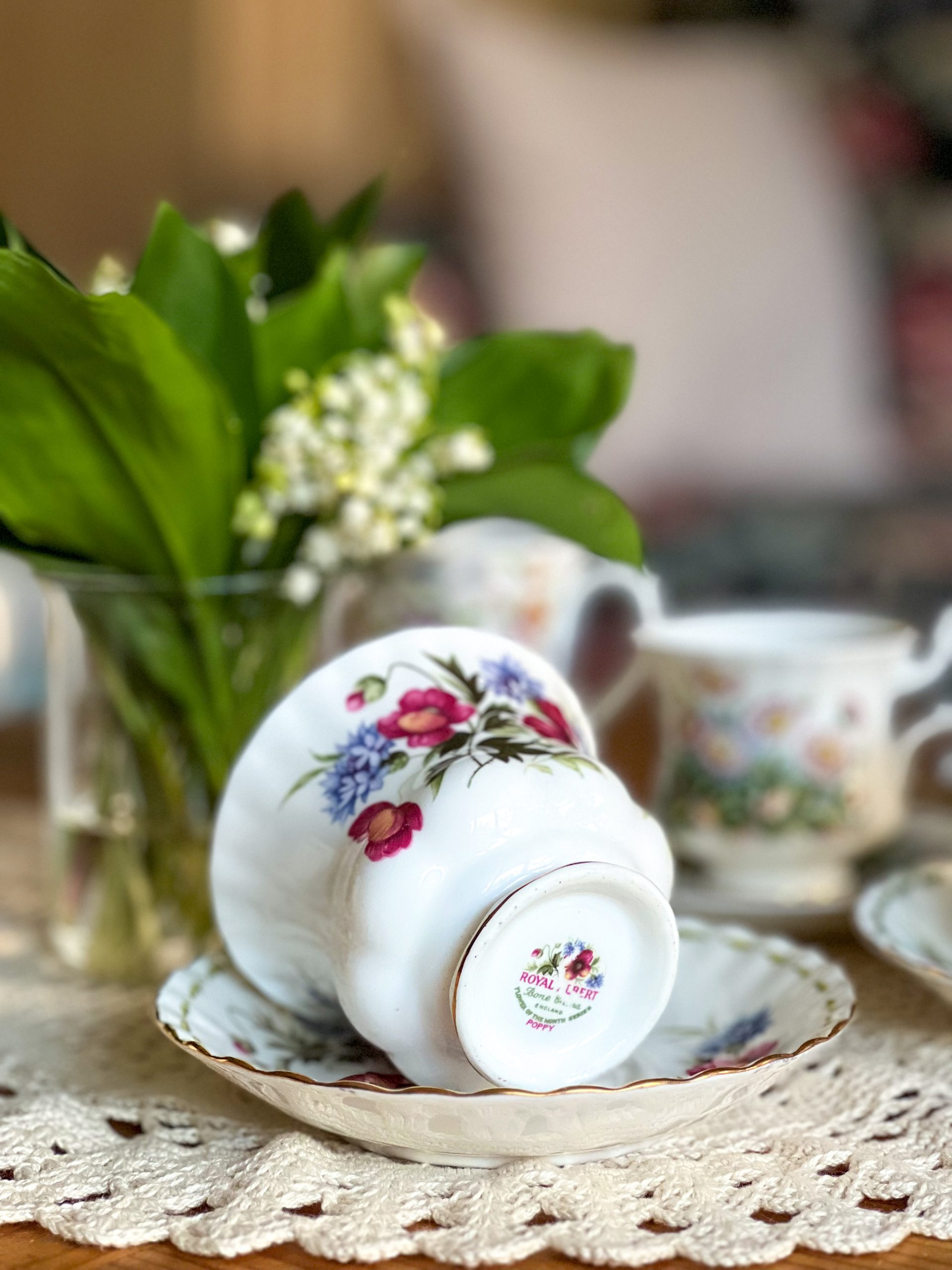 On adore cette collection vintage en porcelaine anglaise Royal Albert, datée 1970, avec les fleurs du mois. Cette tasse ancienne Poppy est si belle avec ses jolis dessins de coquelicots aux couleurs vives, on l’adore !