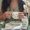 Une très belle tasse à thé en porcelaine anglaise ! On aime beaucoup son joli motif fleuri, à la fois délicat et coloré.