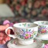 Cette tasse fleurie est en parfait état.