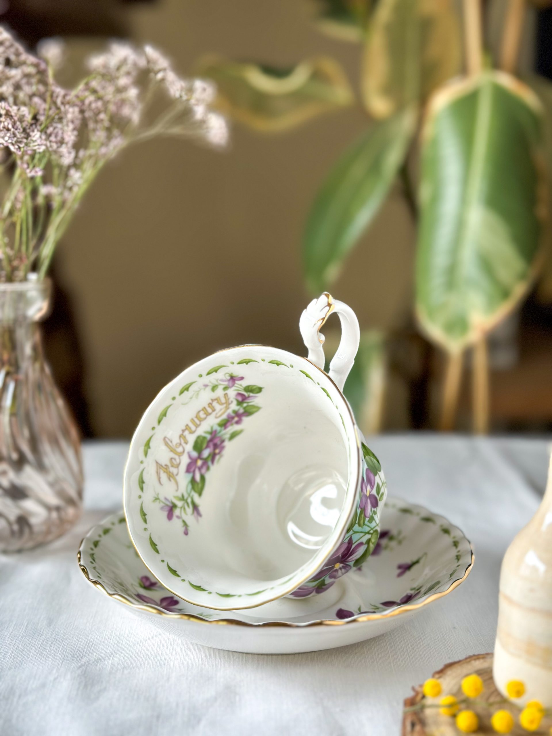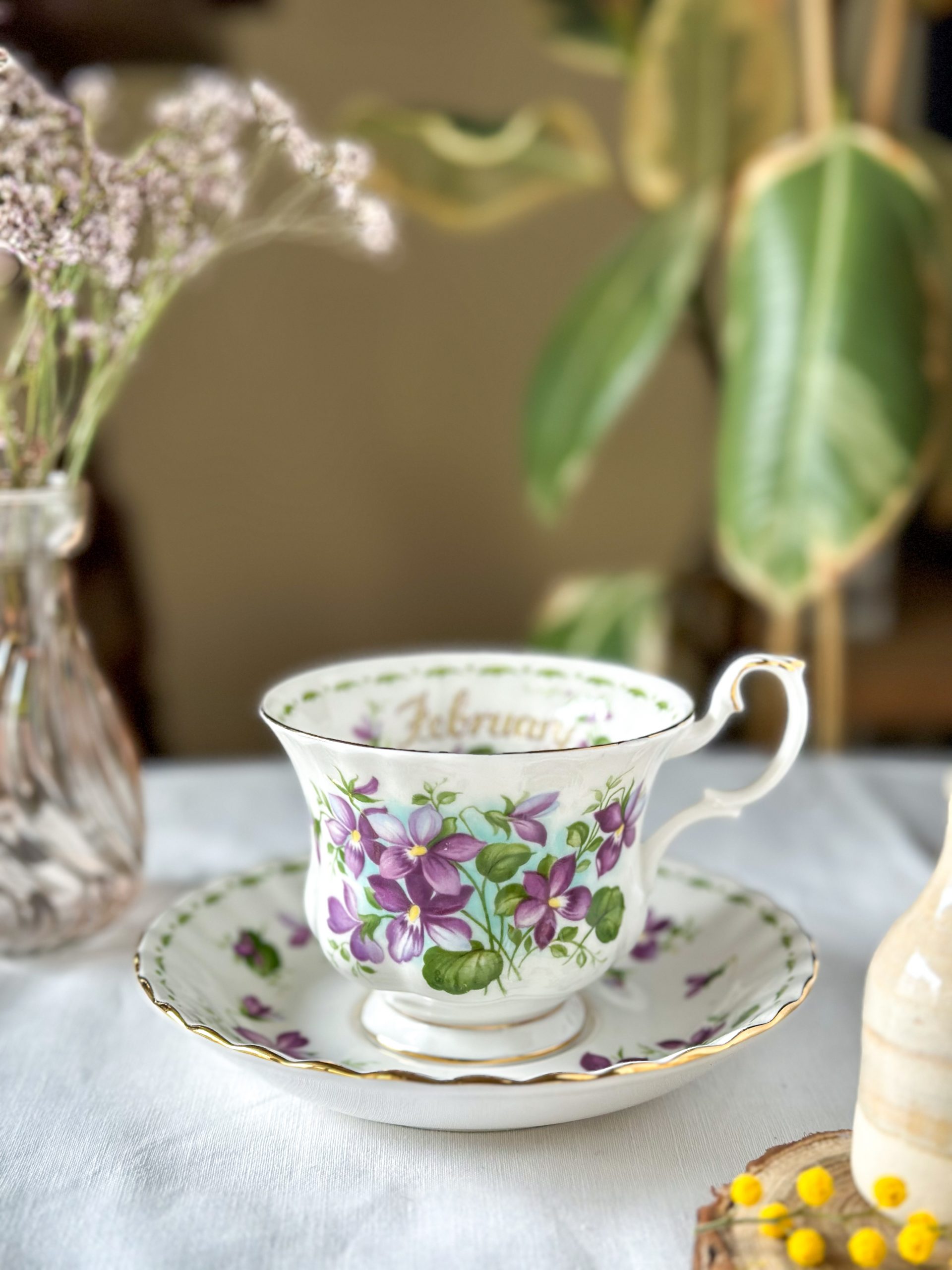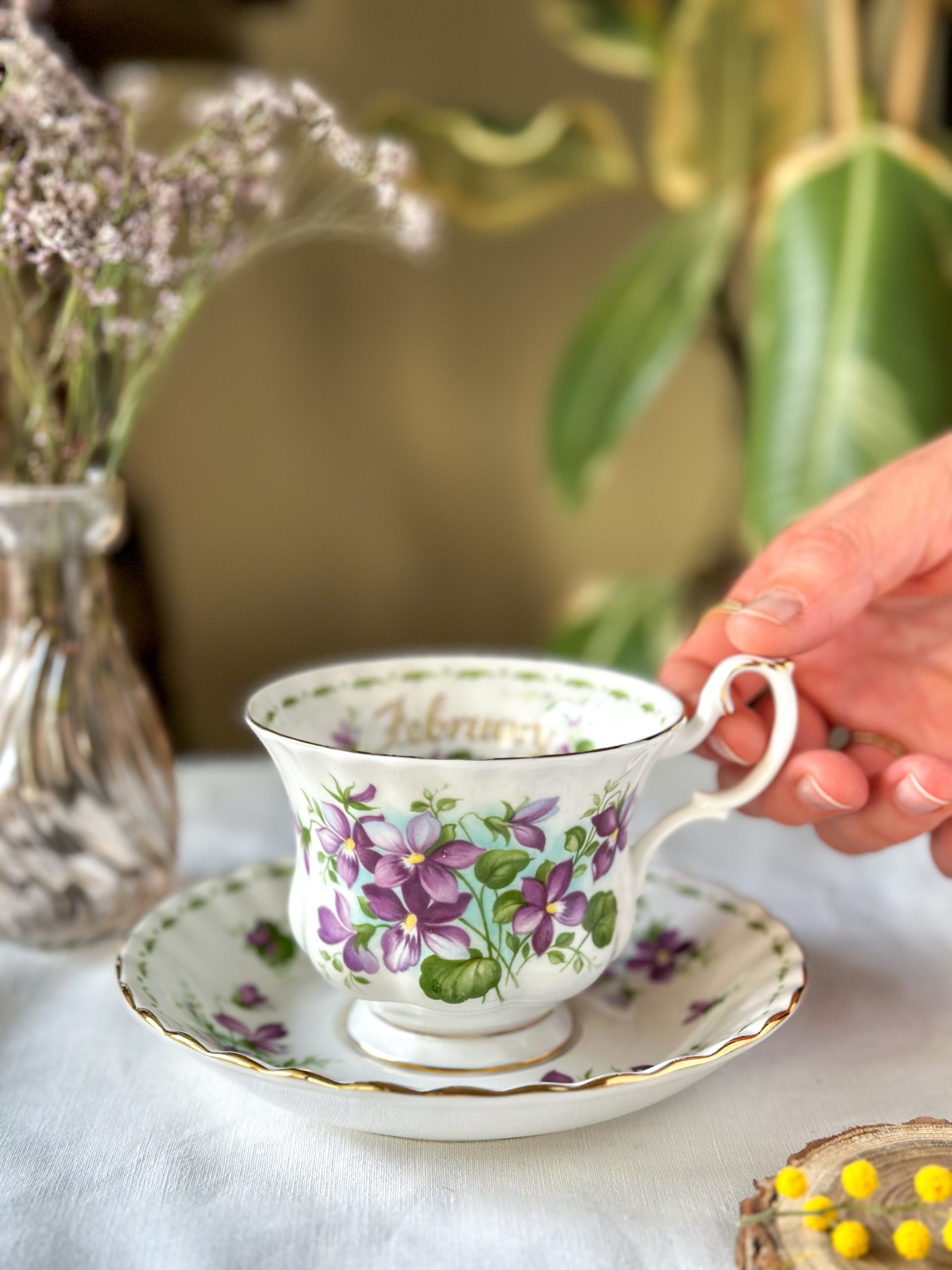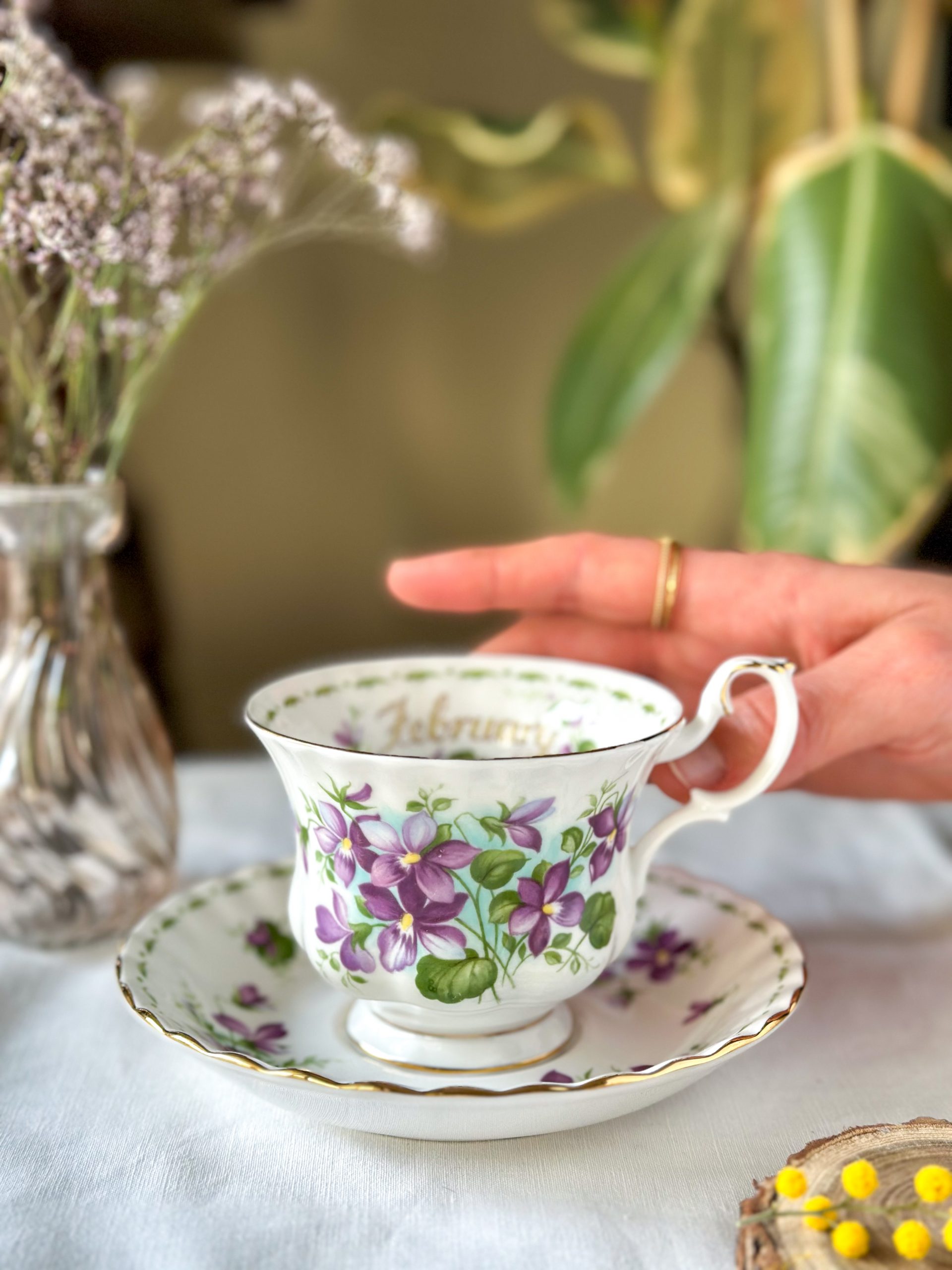 La tasse Royal Albert du mois de Février de la série “Flower of the Month”.