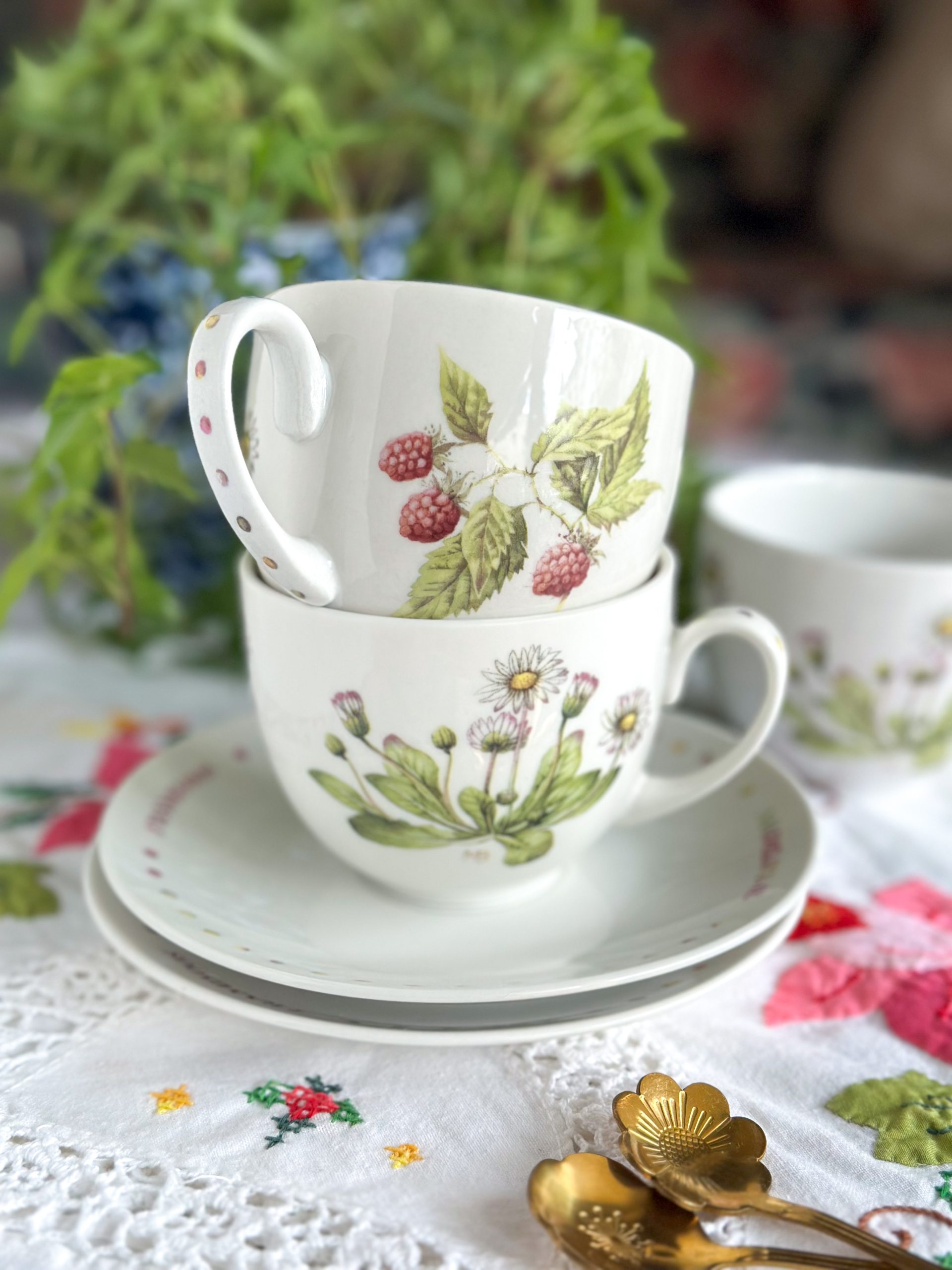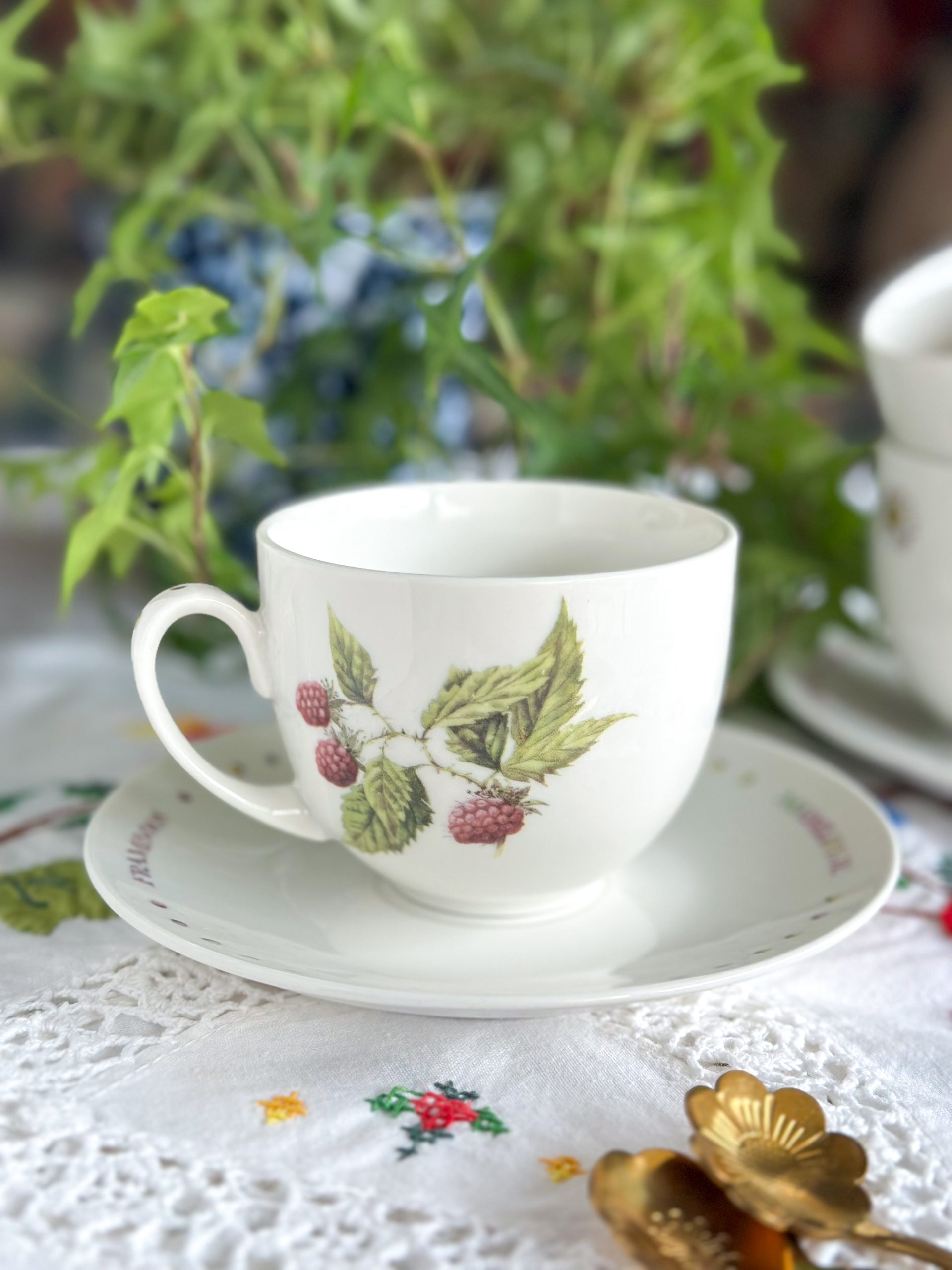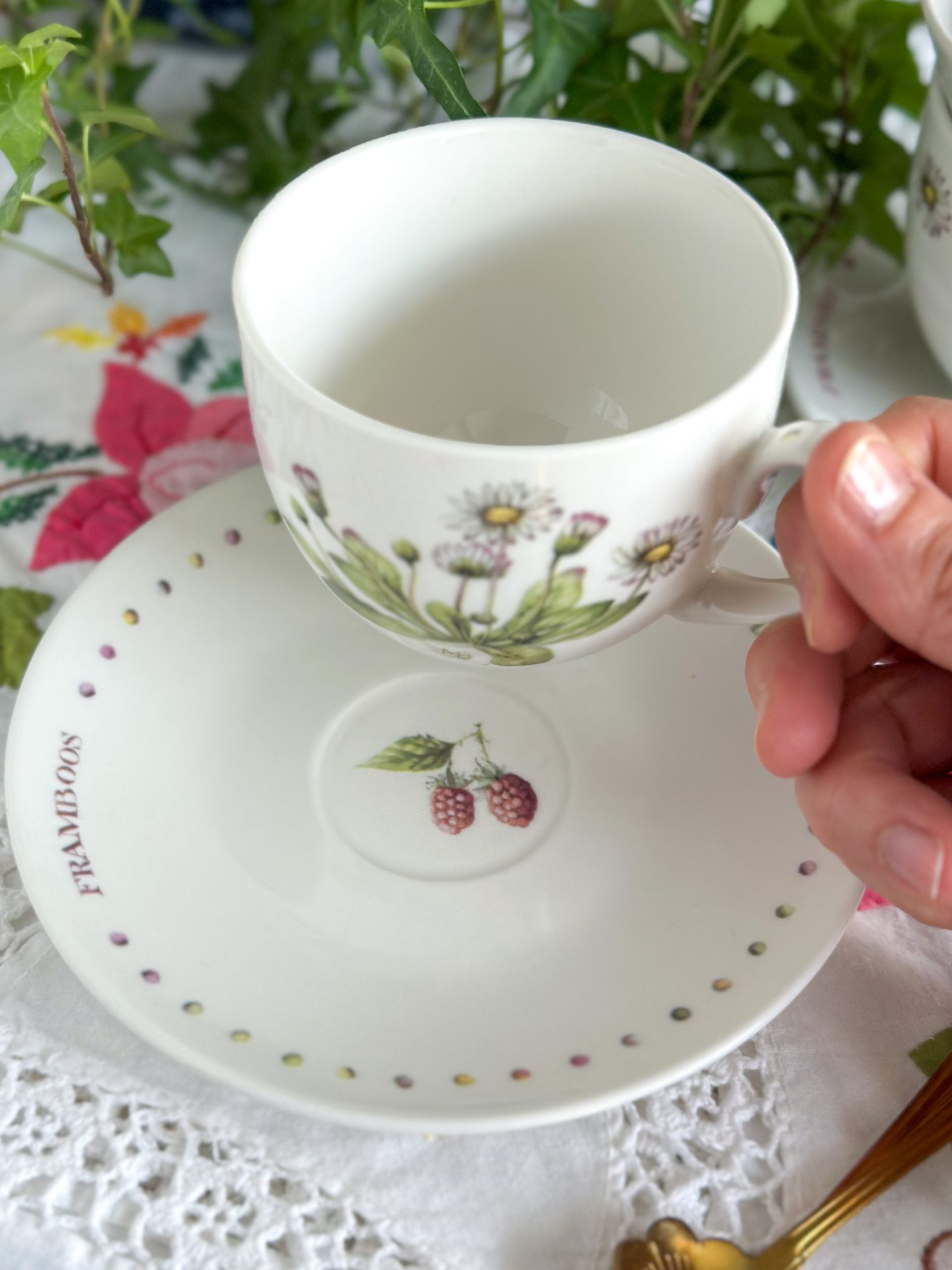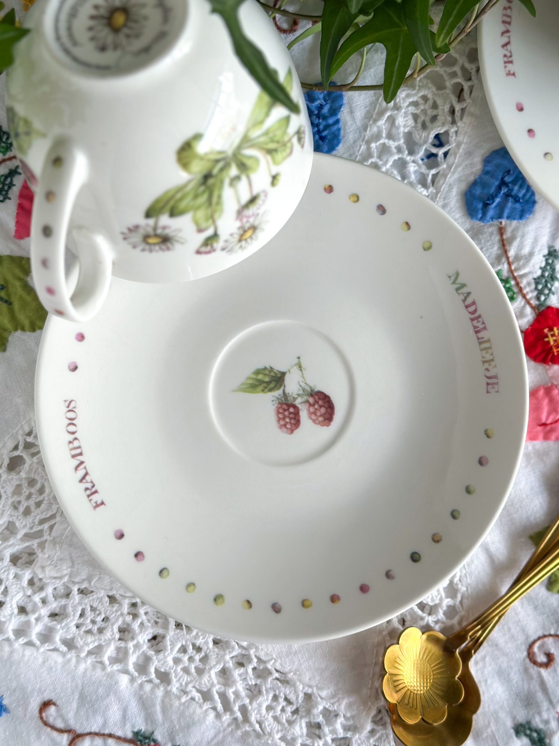 On craque pour cette jolie tasse de Printemps ! Cette tasse à thé « Wildflowers » est joliment décorée devant avec un bouquet de pâquerettes, et au dos avec une branche de framboisier. On l’adore pour passer un moment thé plein de poésie, avec sa sous-tasse assortie.
