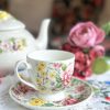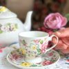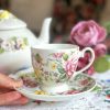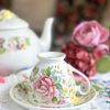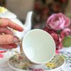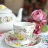 Magnifique tasse à thé en porcelaine anglaise ! On adore ses superbes dessins de roses aux tons jaunes et roses. Cette tasse est très élégante avec sa forme sur pied, et a la contenance parfaite pour vos tea times !