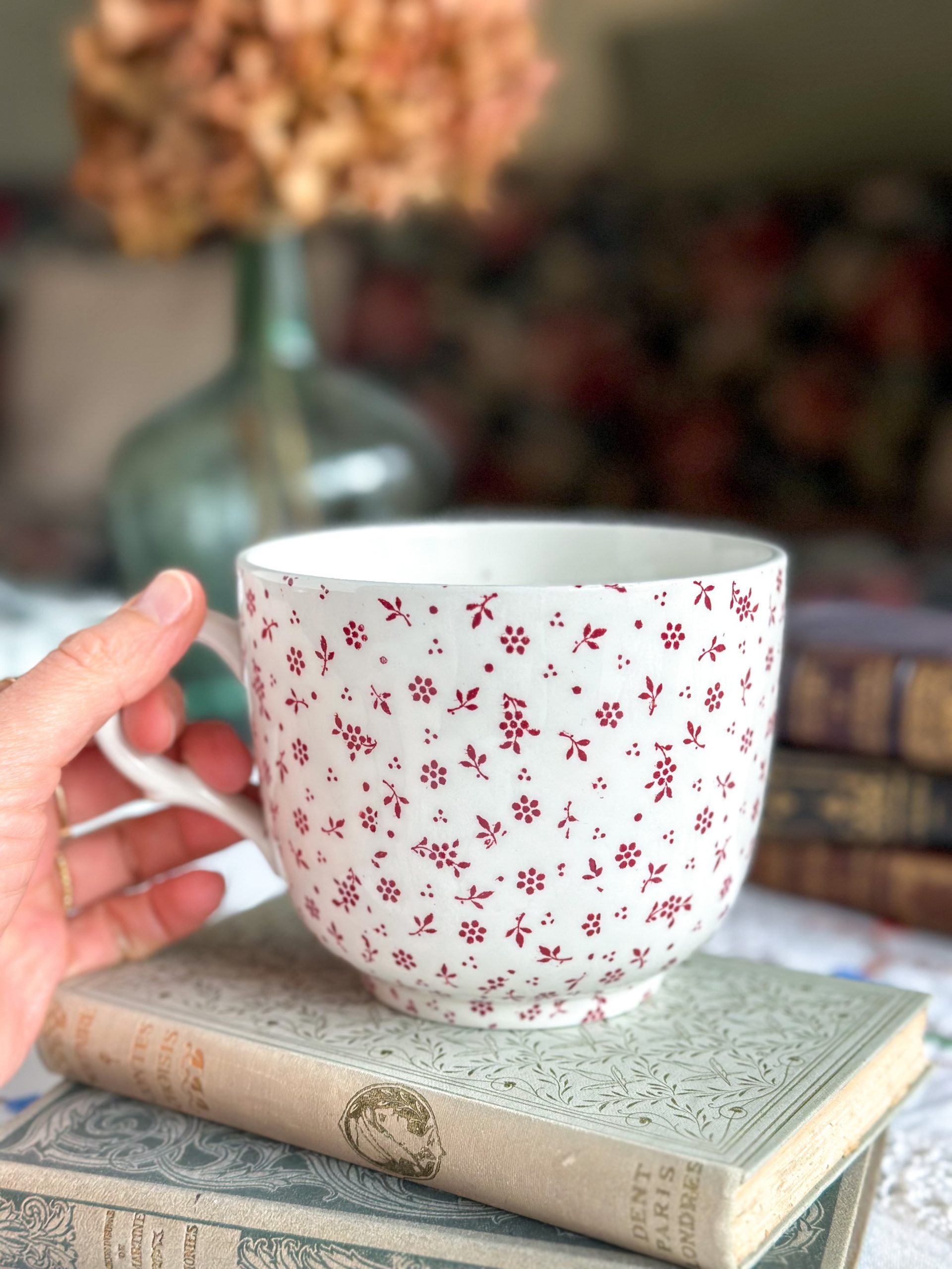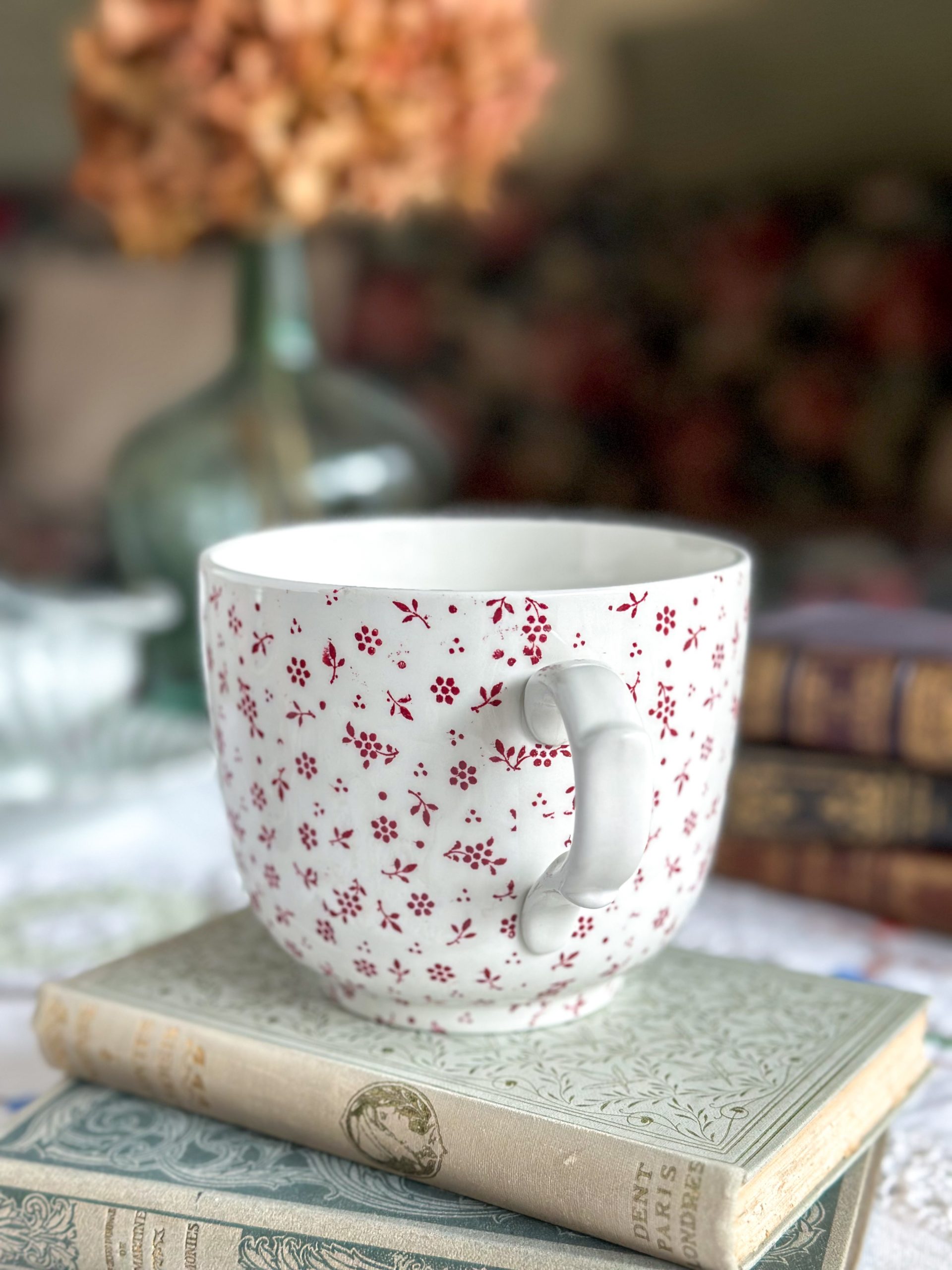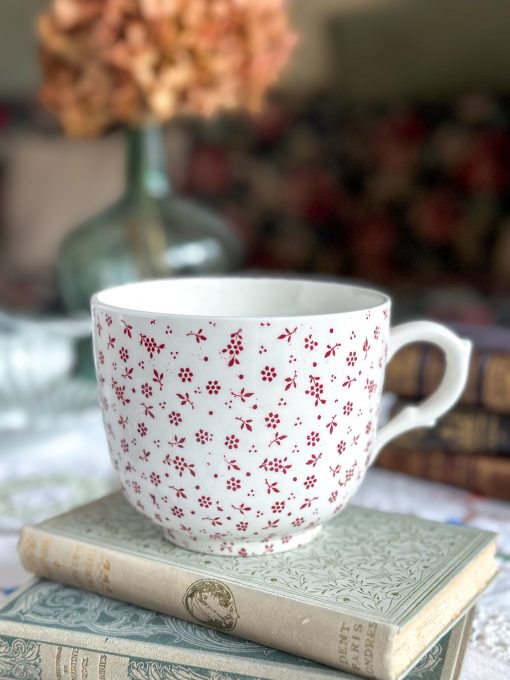 Superbe tasse anglaise ! On adore sa jolie faïence de qualité Terre de fer anglaise, à la patine unique. Parsemée de petites fleurs rouges, cette grande tasse à petit-déjeuner apportera beaucoup de charme chez vous.