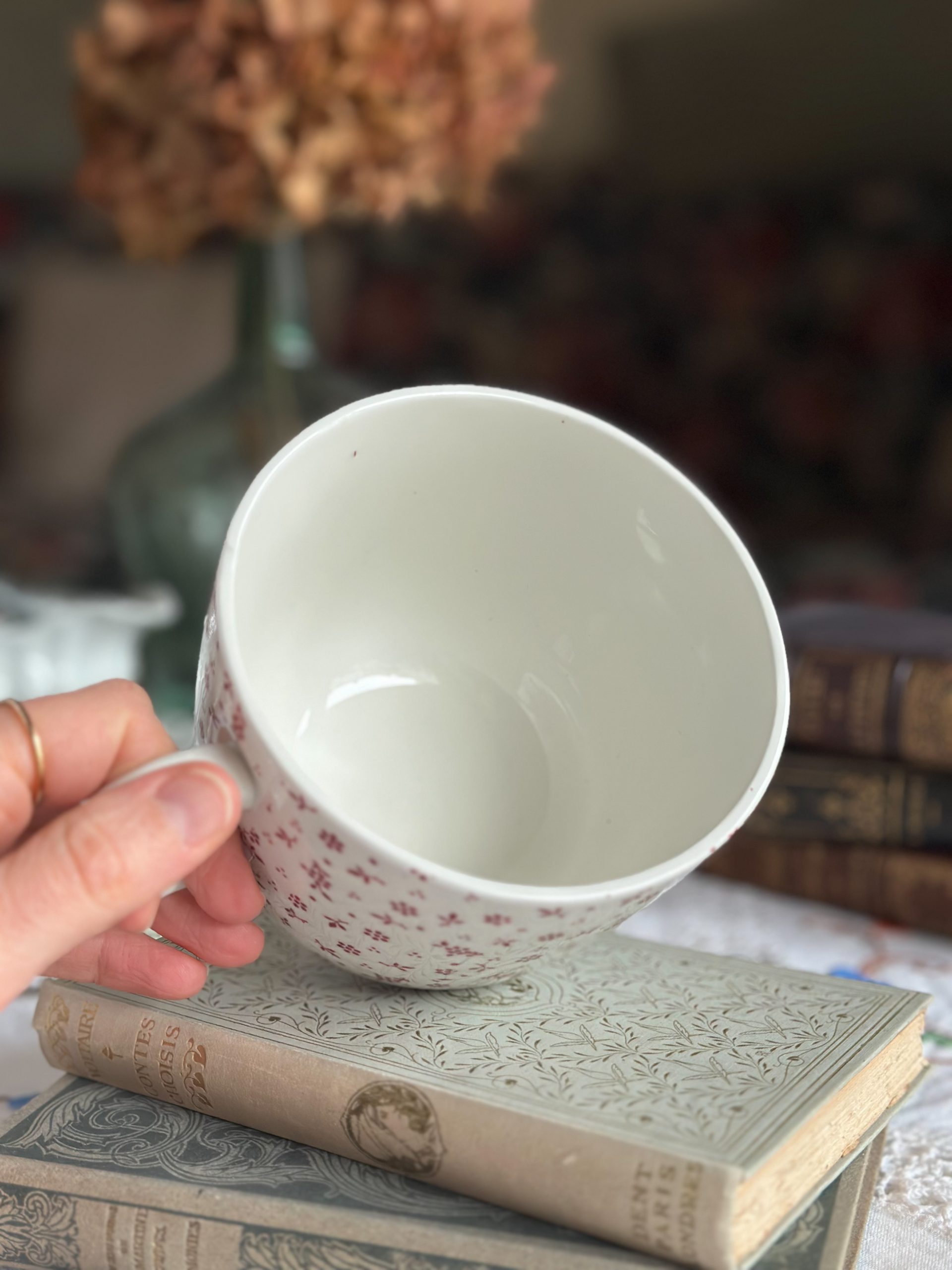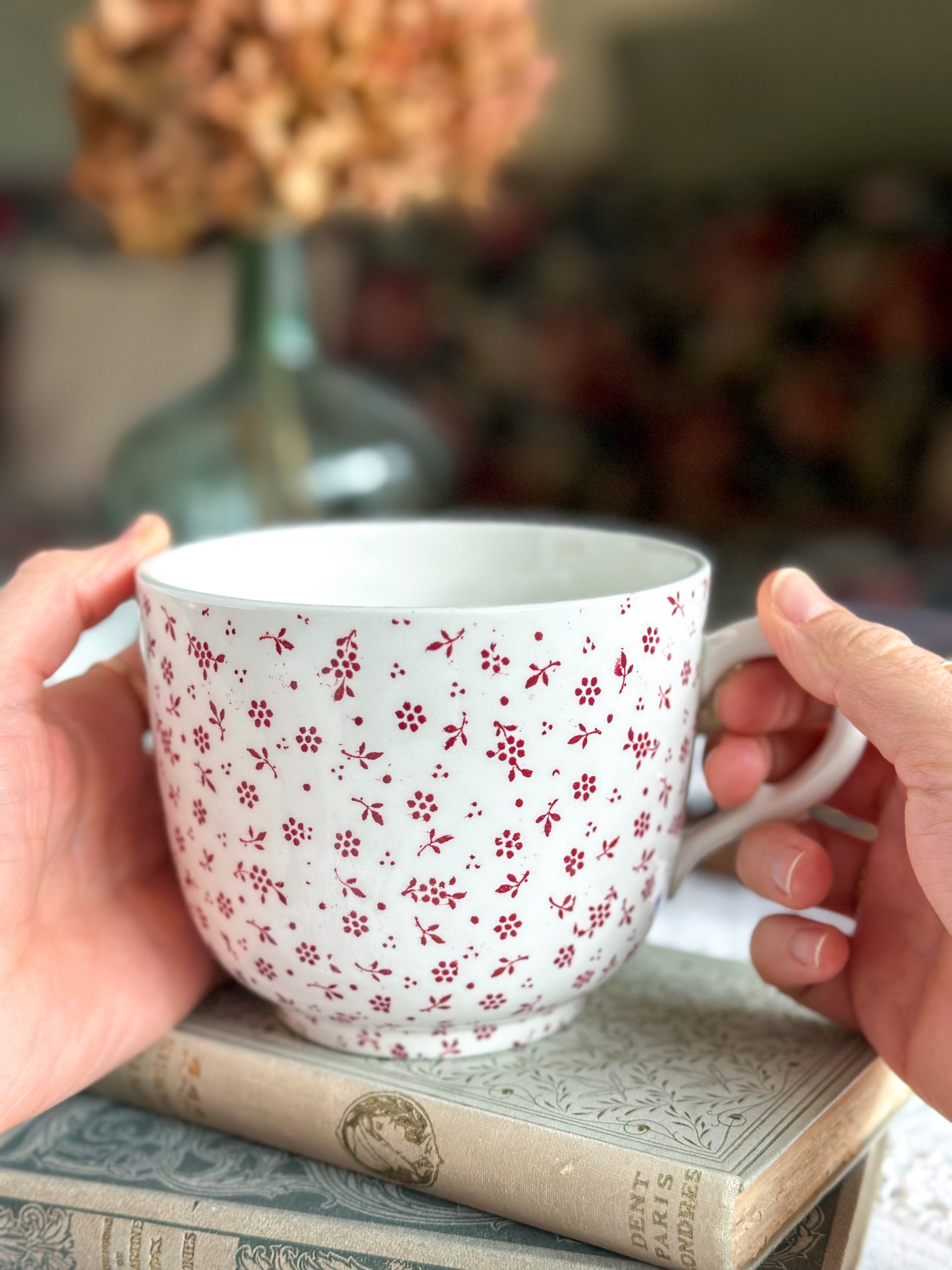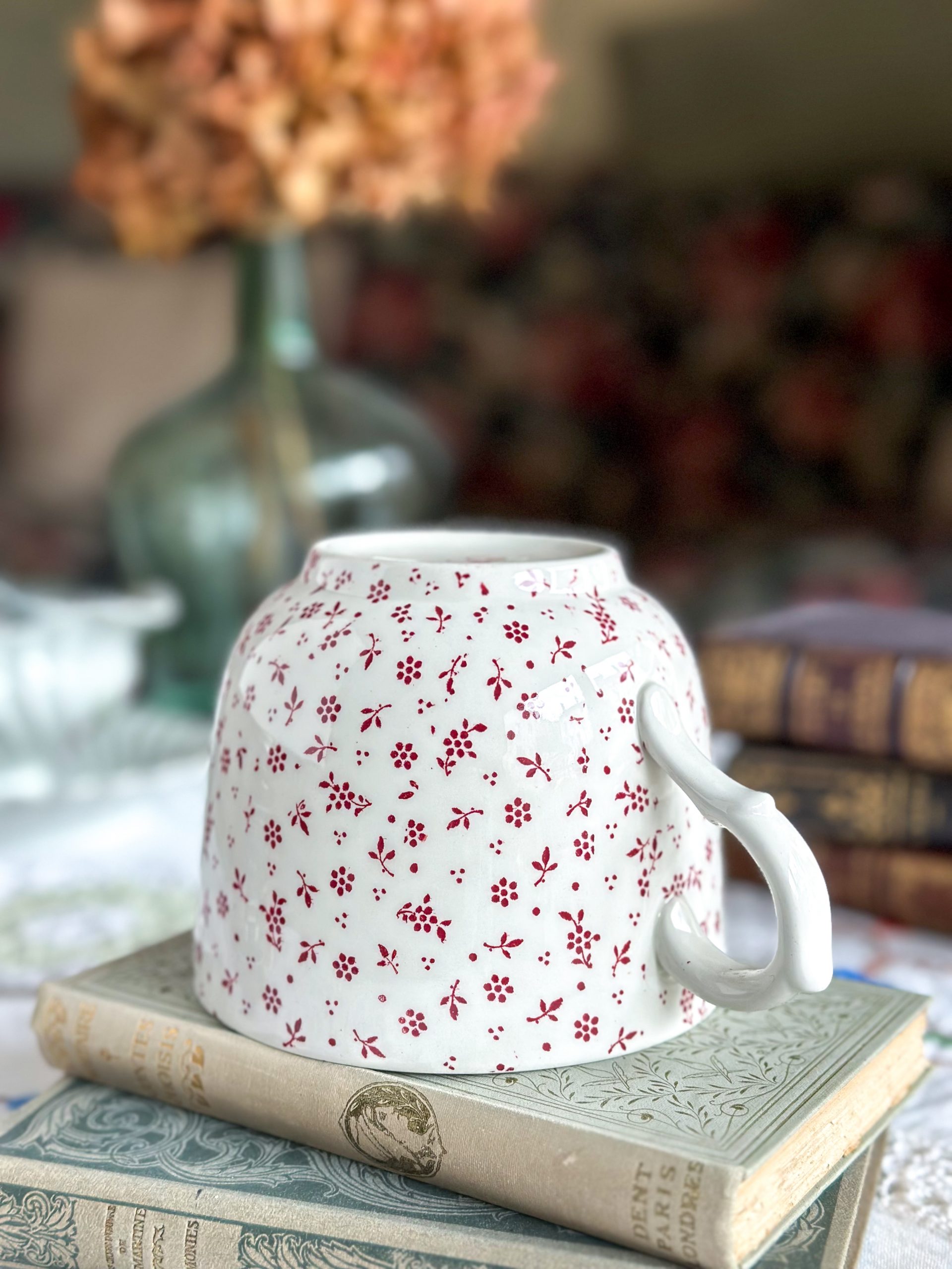 Superbe tasse anglaise ! On adore sa jolie faïence de qualité Terre de fer anglaise, à la patine unique. Parsemée de petites fleurs rouges, cette grande tasse à petit-déjeuner apportera beaucoup de charme chez vous.