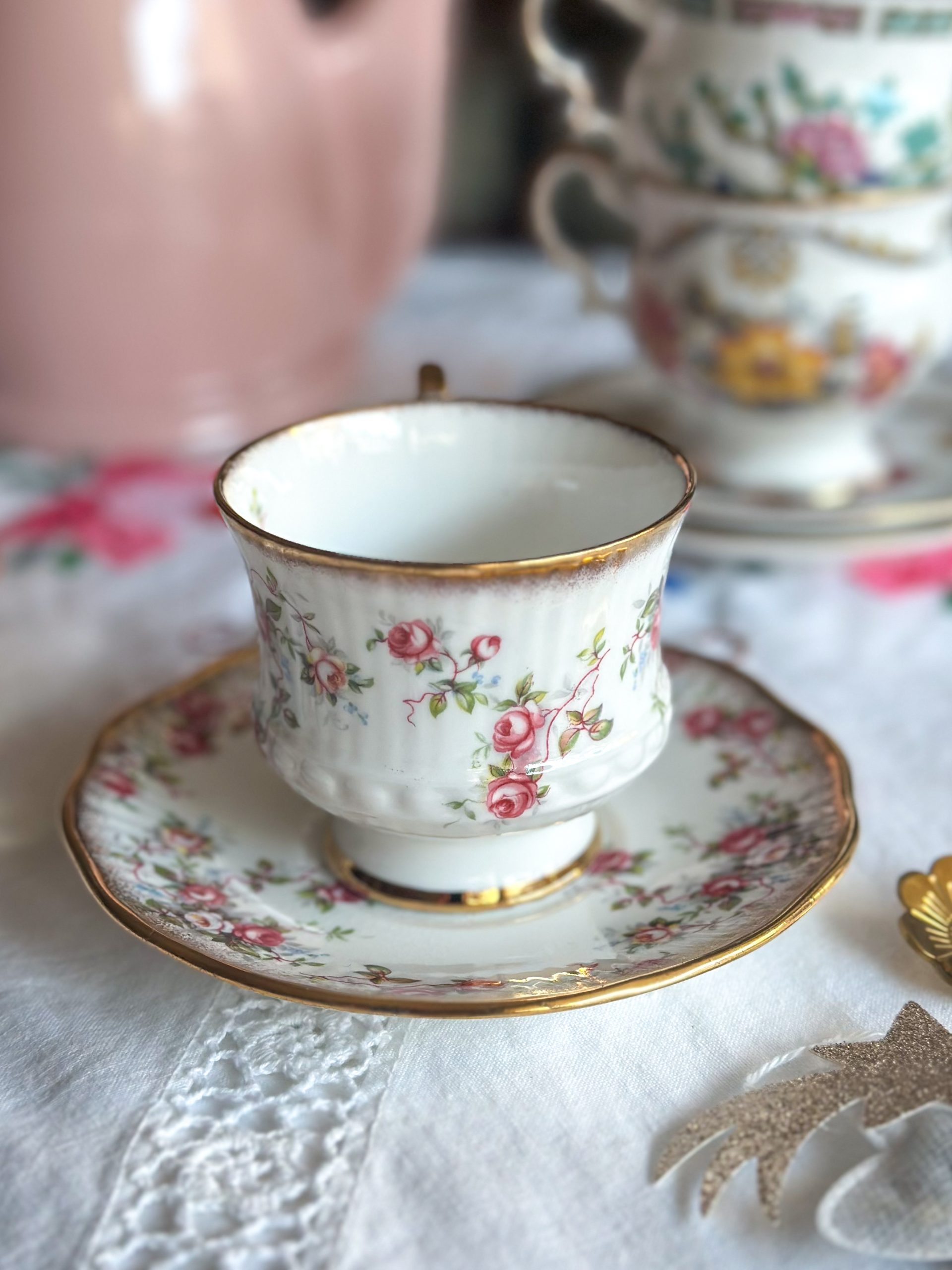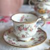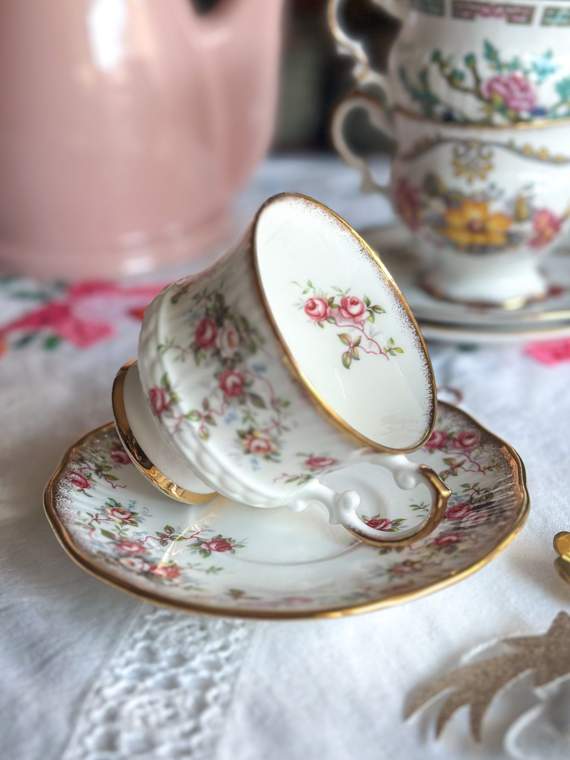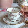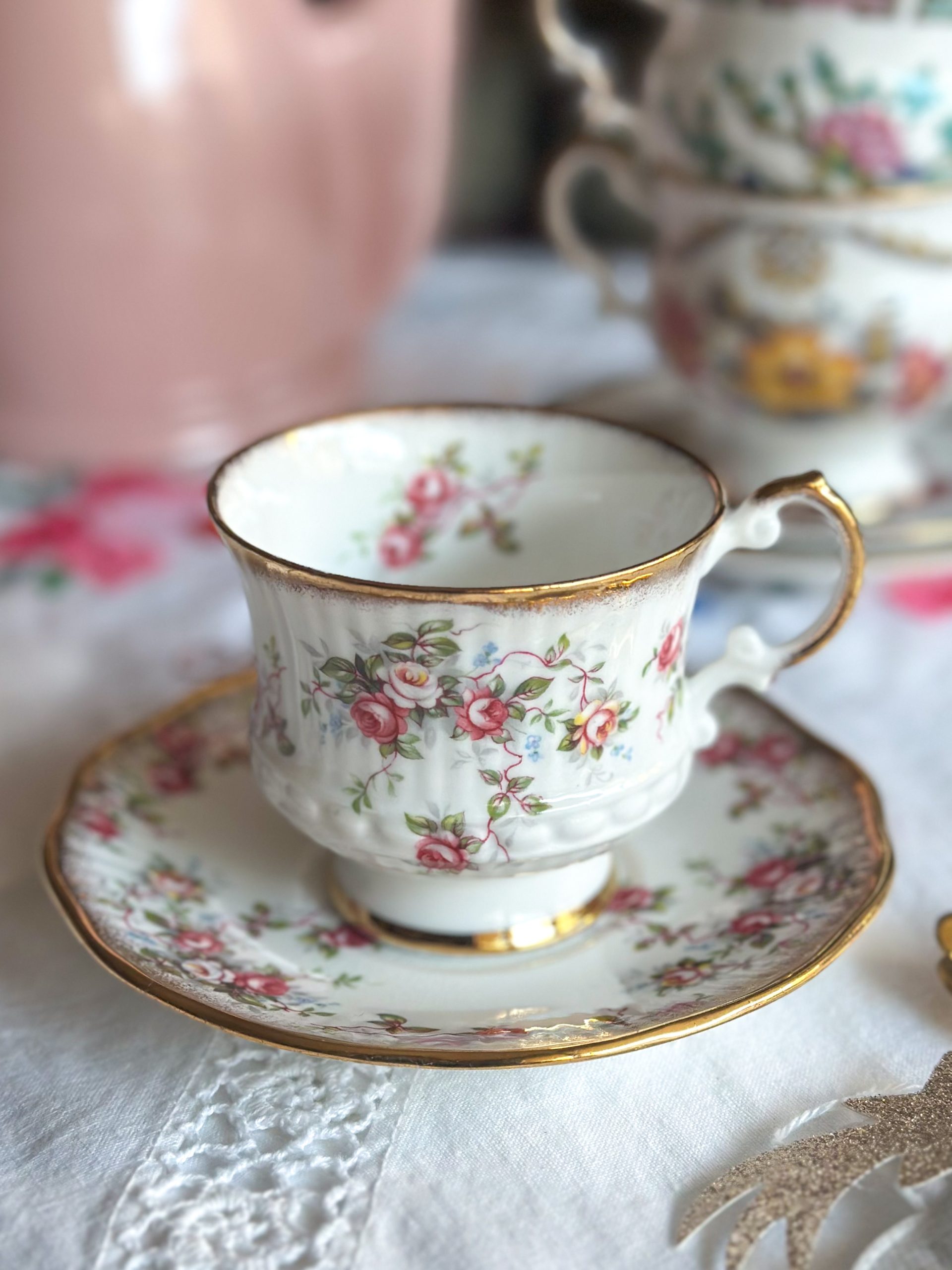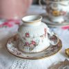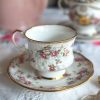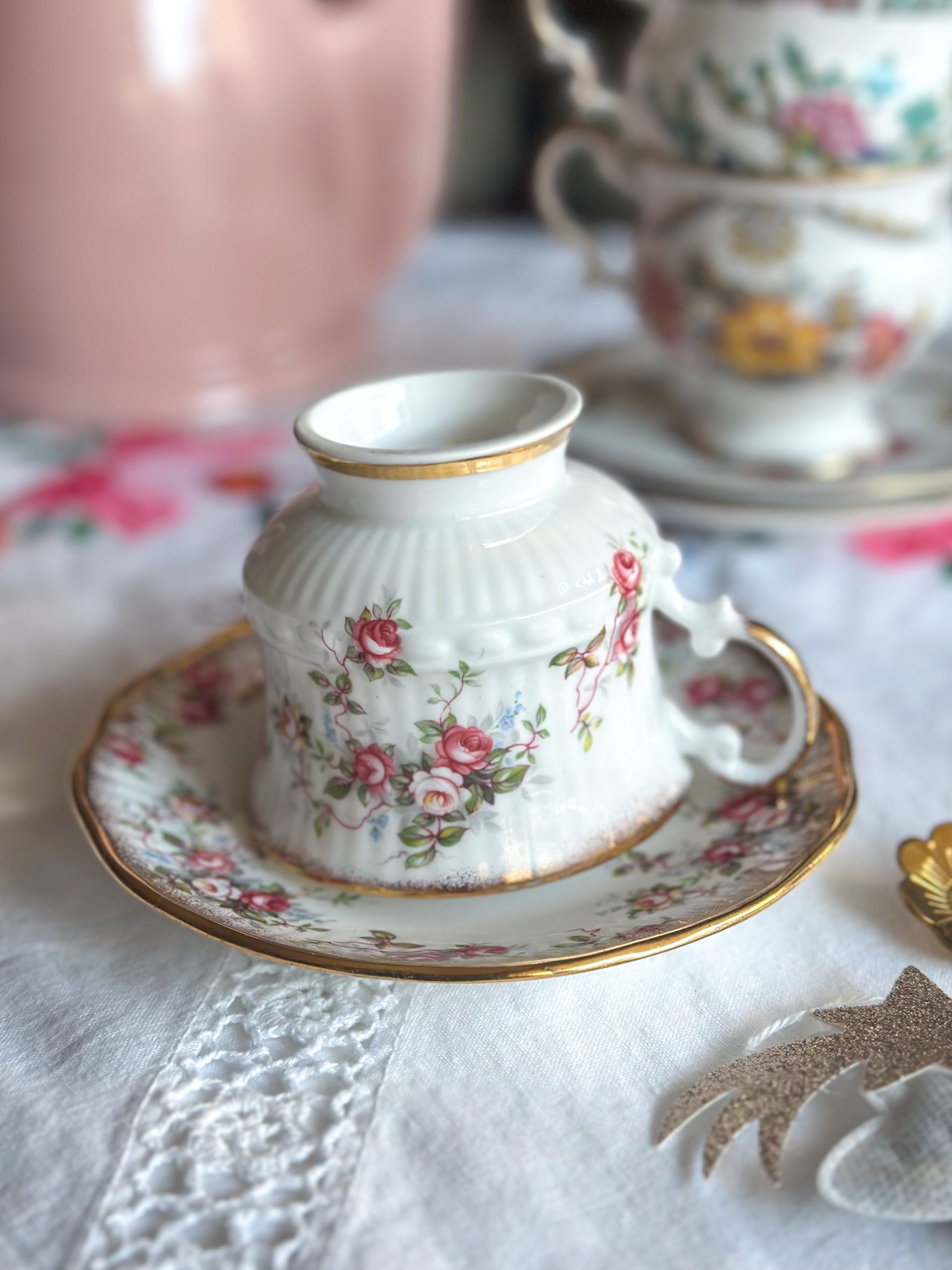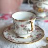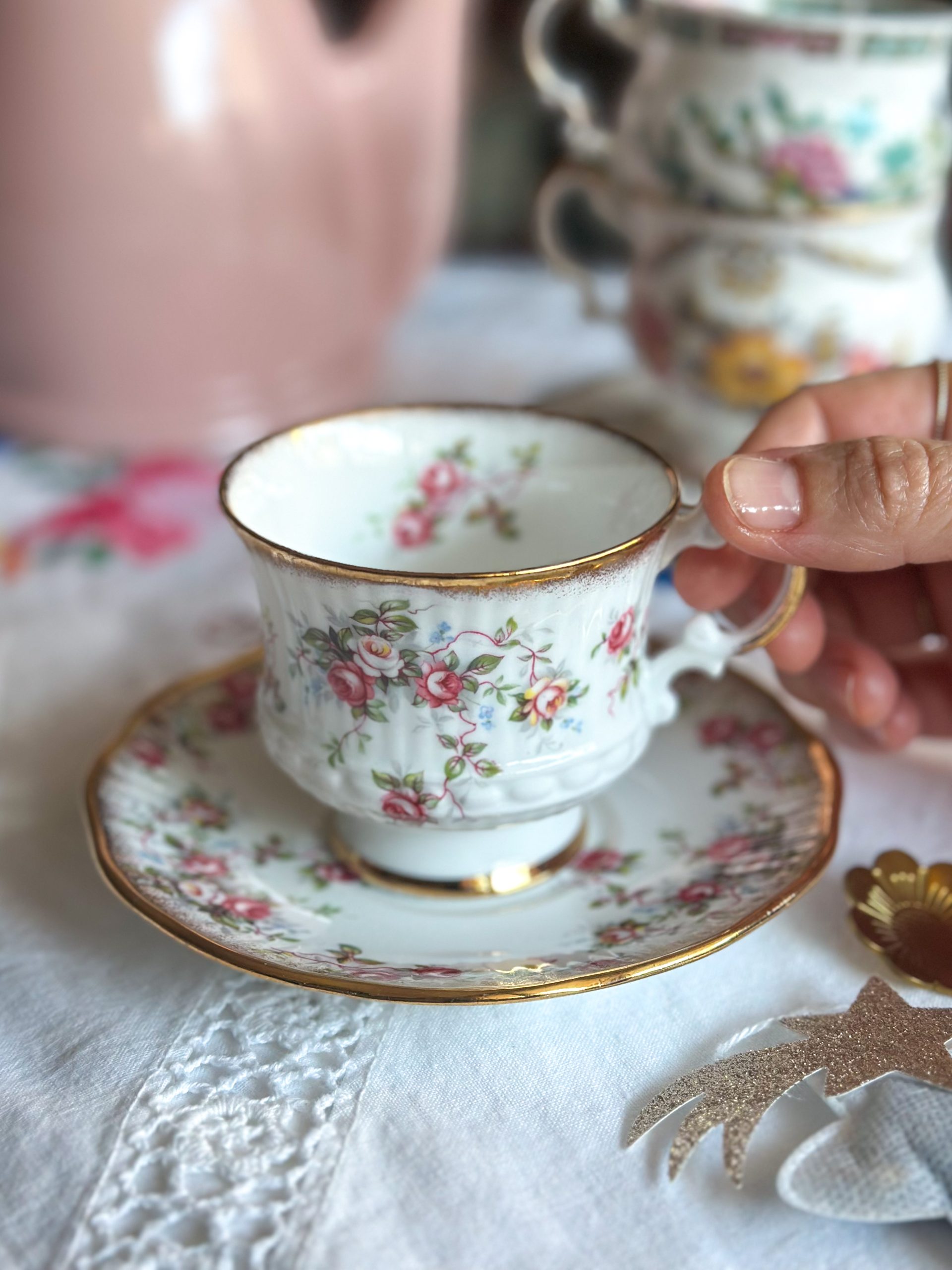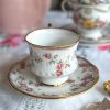 Magnifique tasse anglaise aux jolis dessins de petites roses ! On adore son motif délicat, et sa jolie forme élégante réhaussée par de beaux liserés dorés. C’est la tasse parfaite pour une pause thé ou café pleine de poésie !
