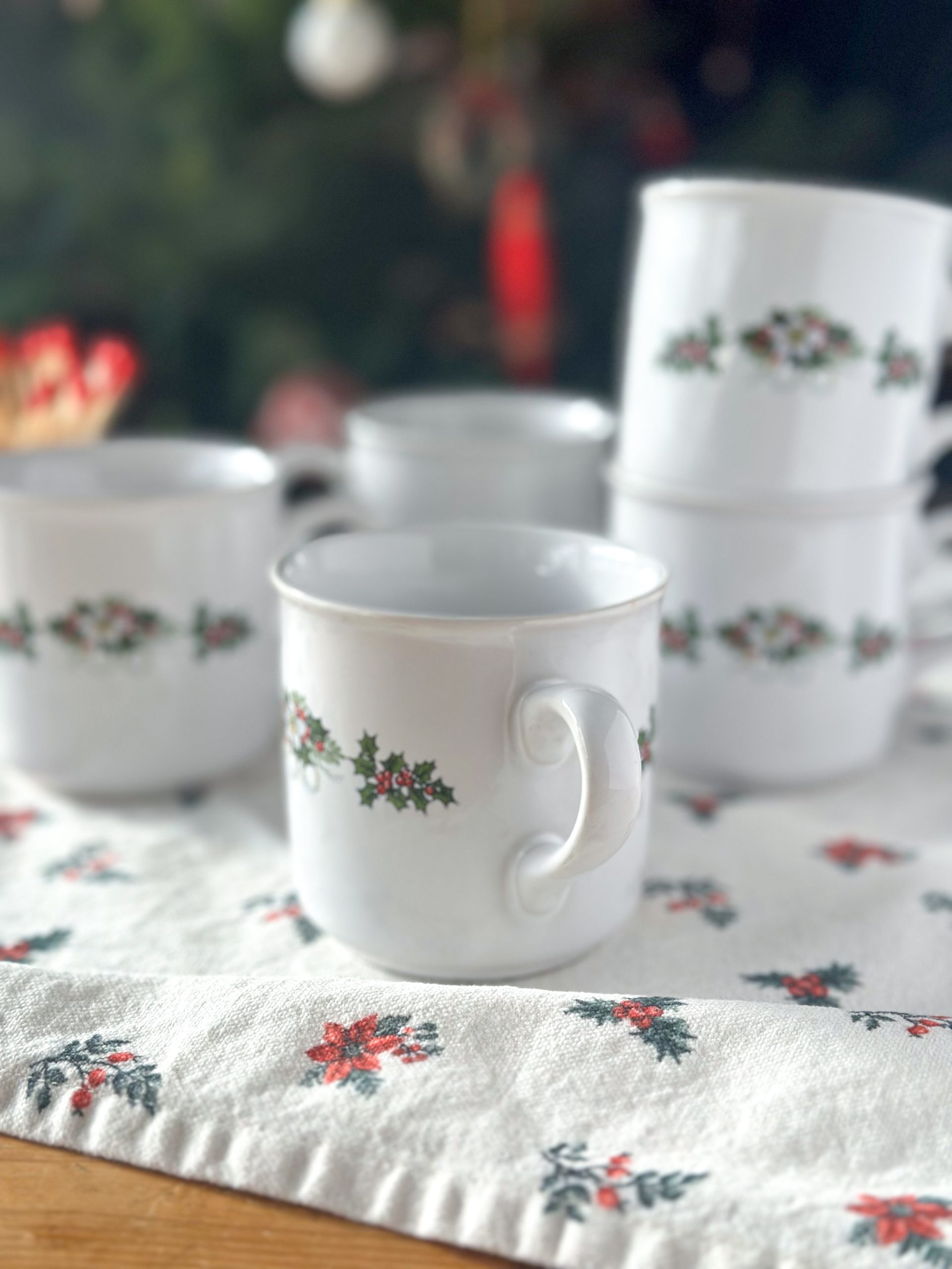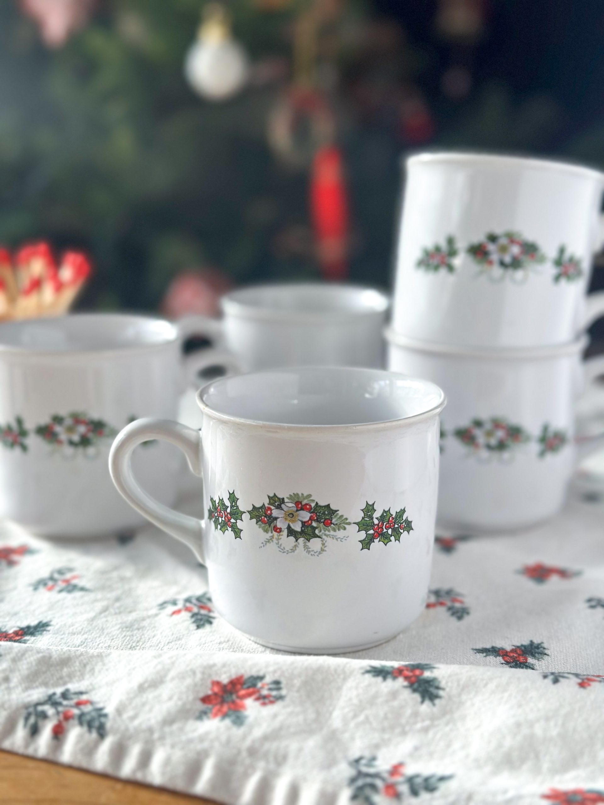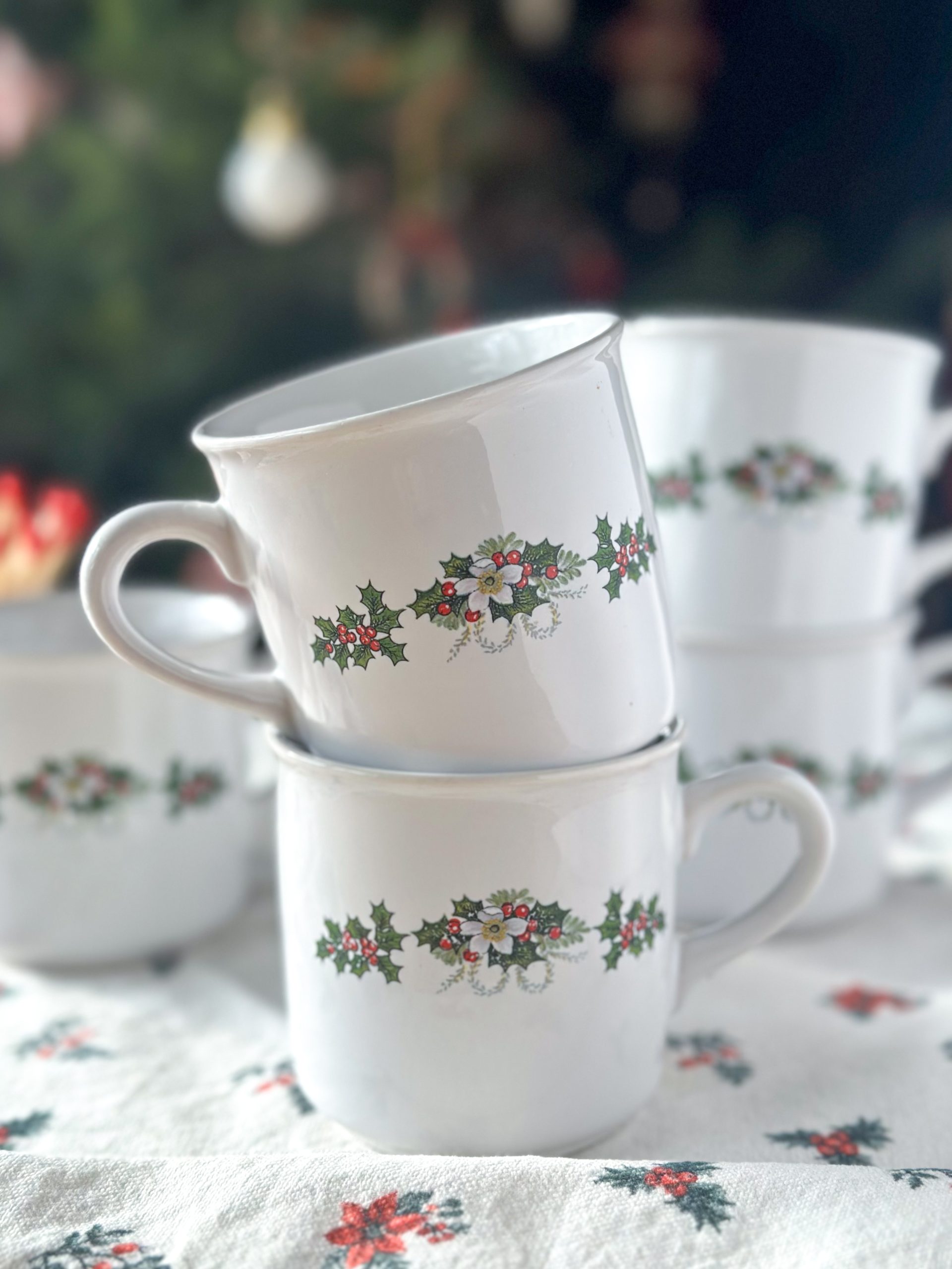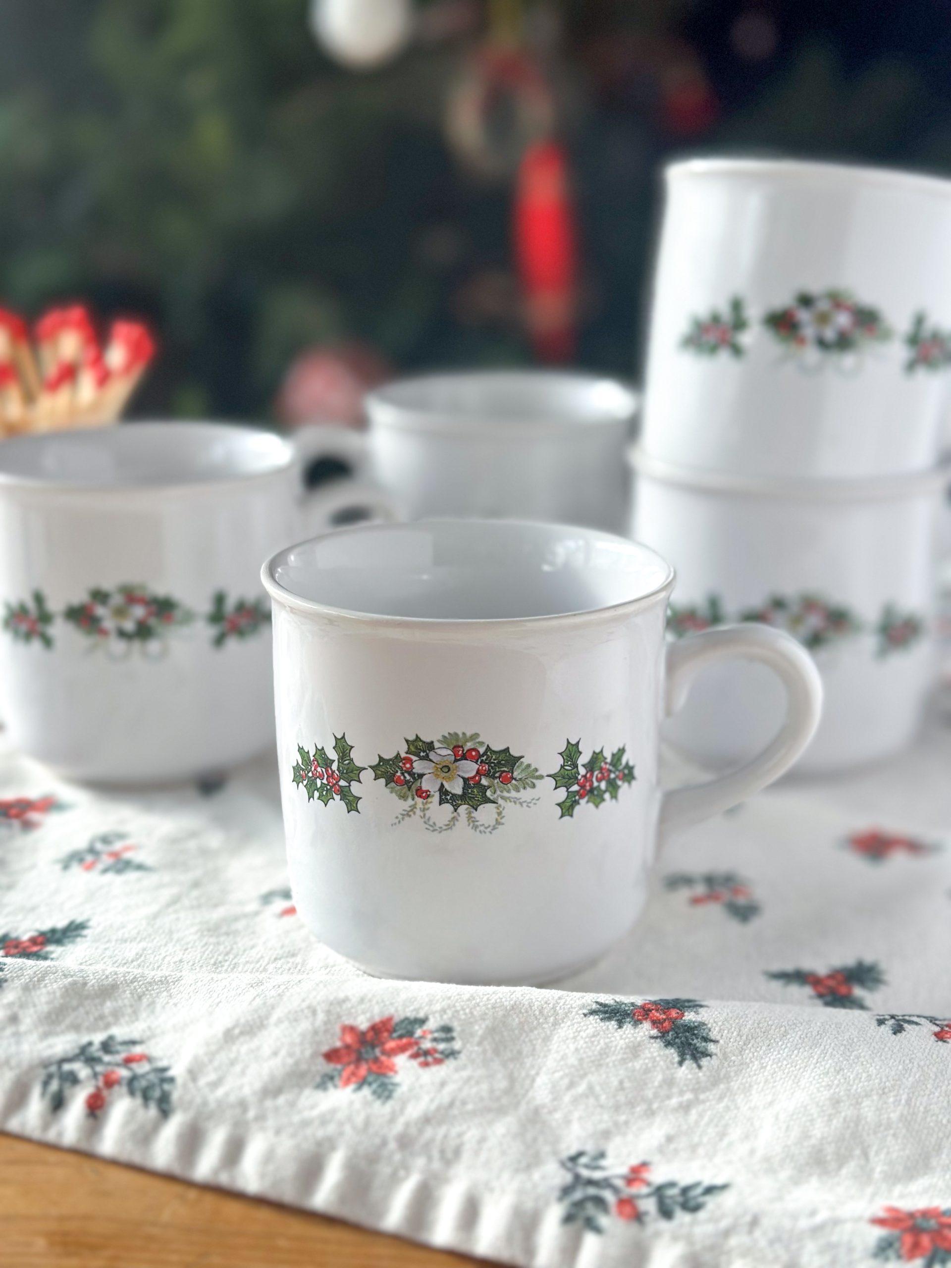 Une jolie tasse vintage pour Noël ! Cette tasse à café est décorée de beaux bouquets de houx des deux côtés. Elle accompagnera vos pauses café de cette saison avec poésie.