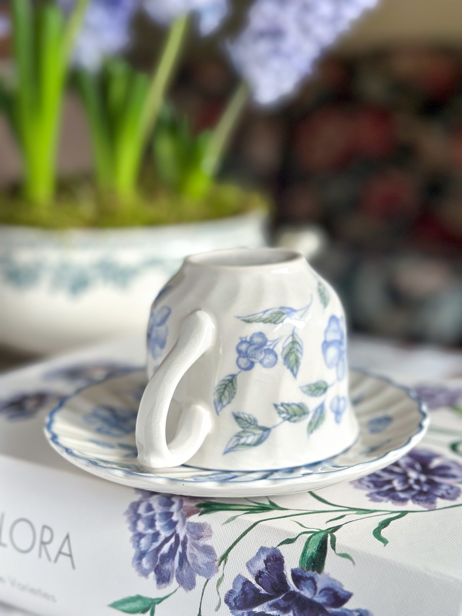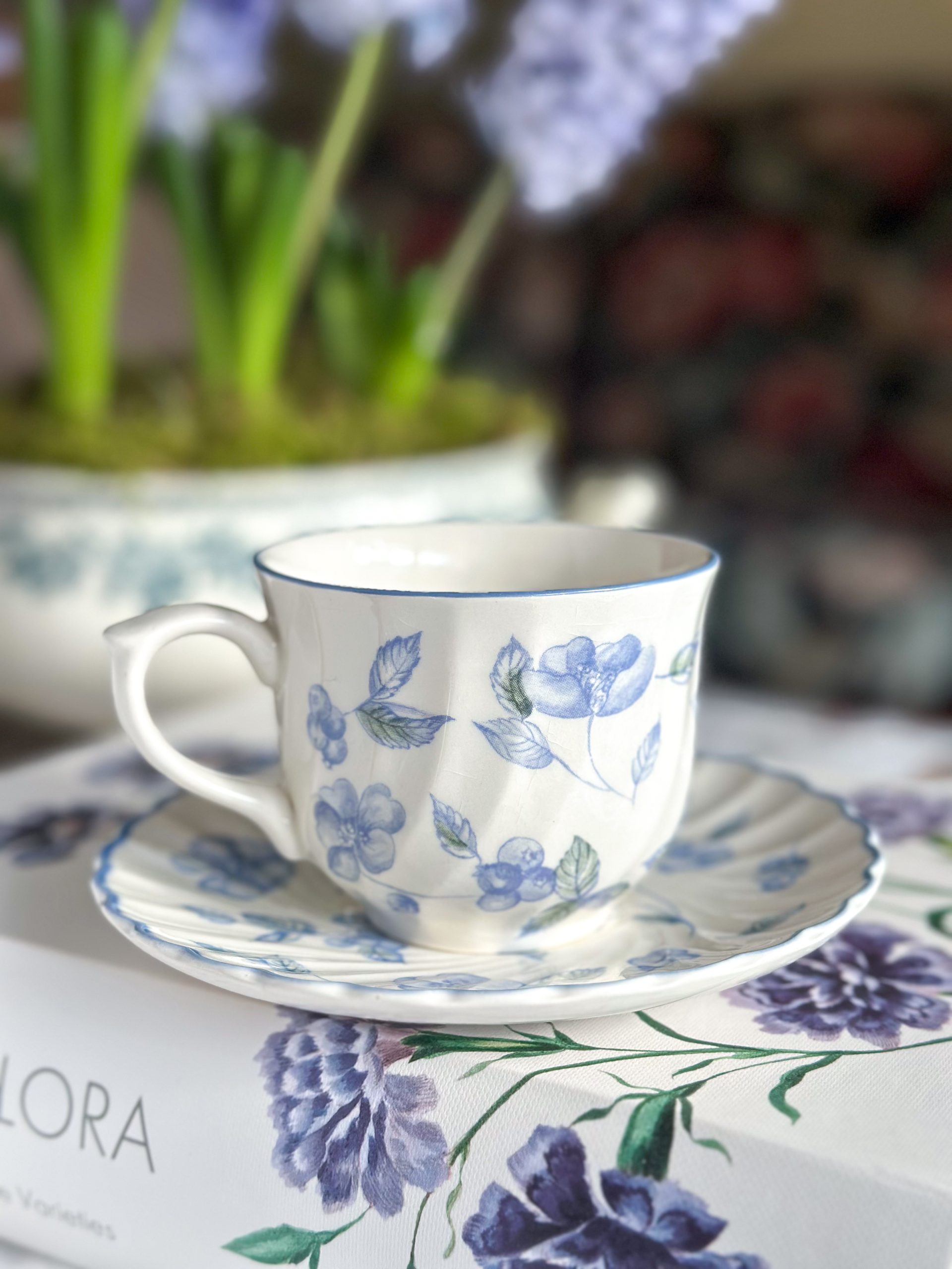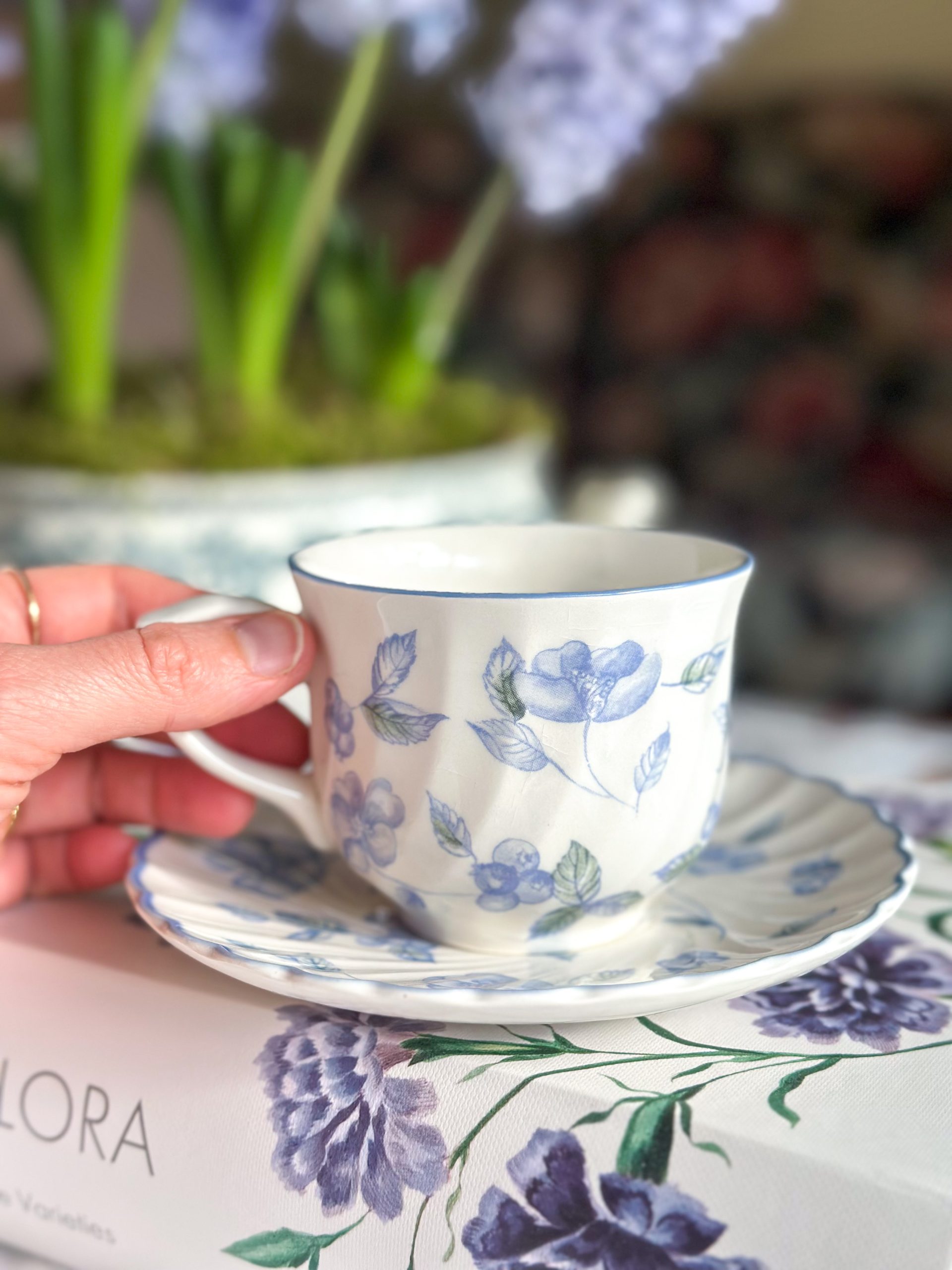 Magnifique tasse anglaise aux jolis dessins bleus mêlant fleurs et baies ! On adore la délicatesse de ses motifs et sa forme élégante en porcelaine torse. Accompagnée de sa sous-tasse assortie, cete tasse à thé anglaise vous fera passé un moment rempli de douceur et de poésie.