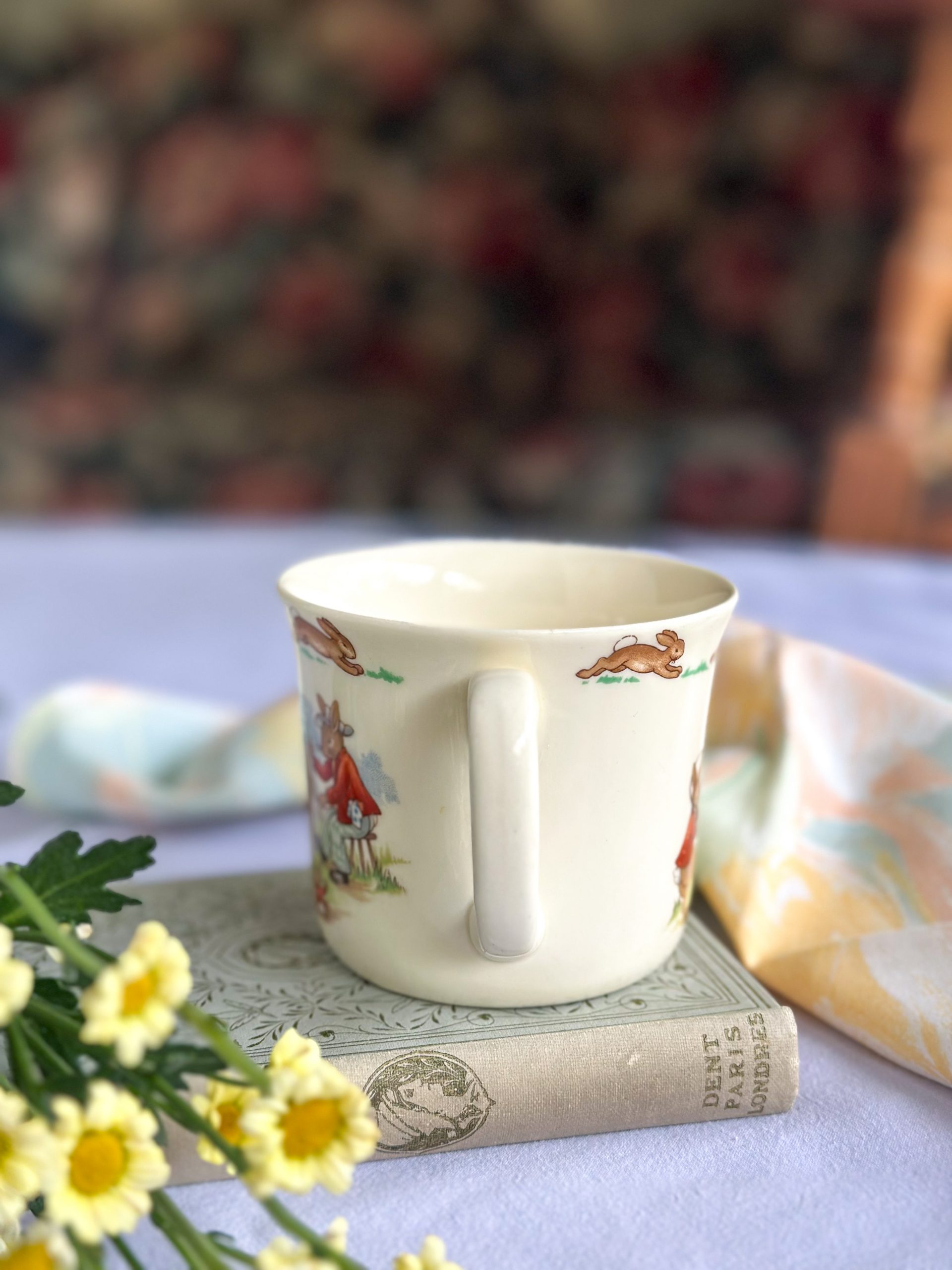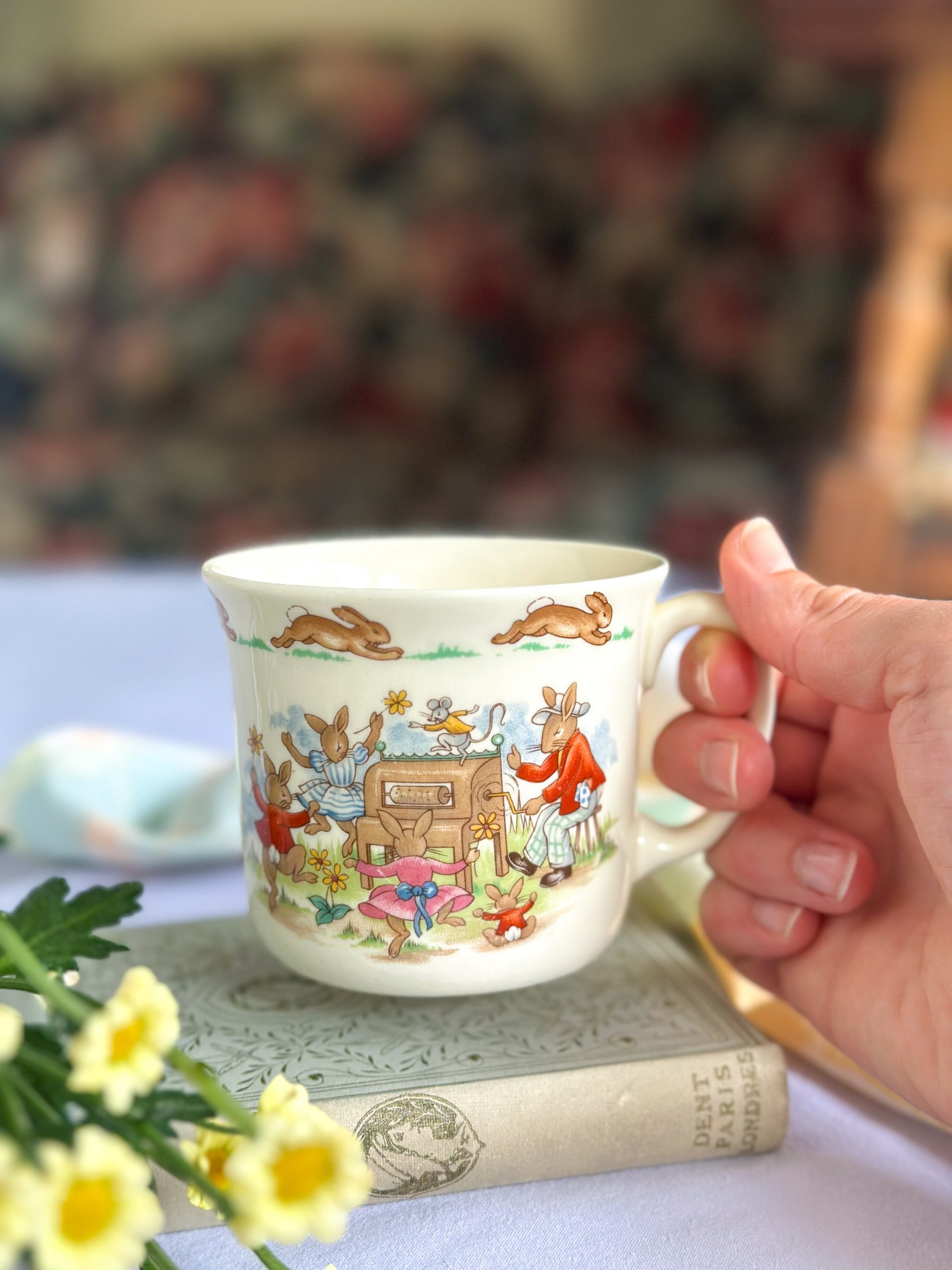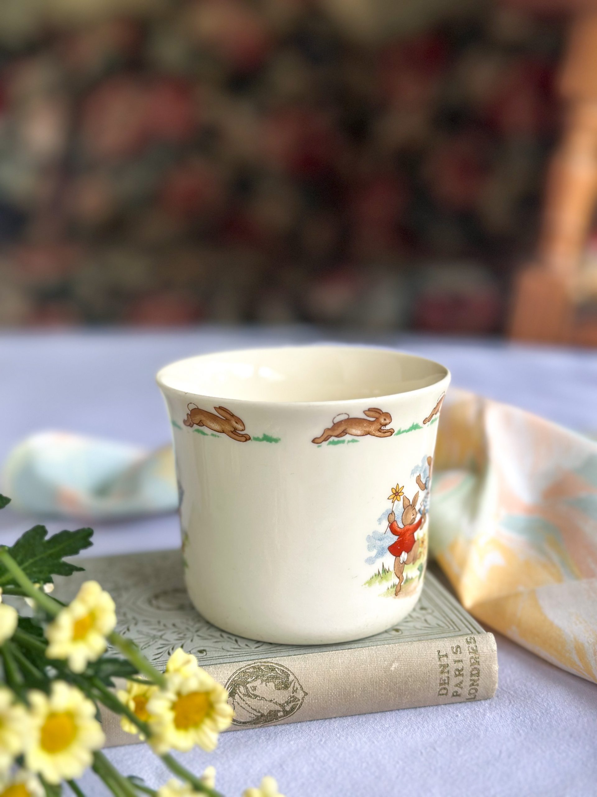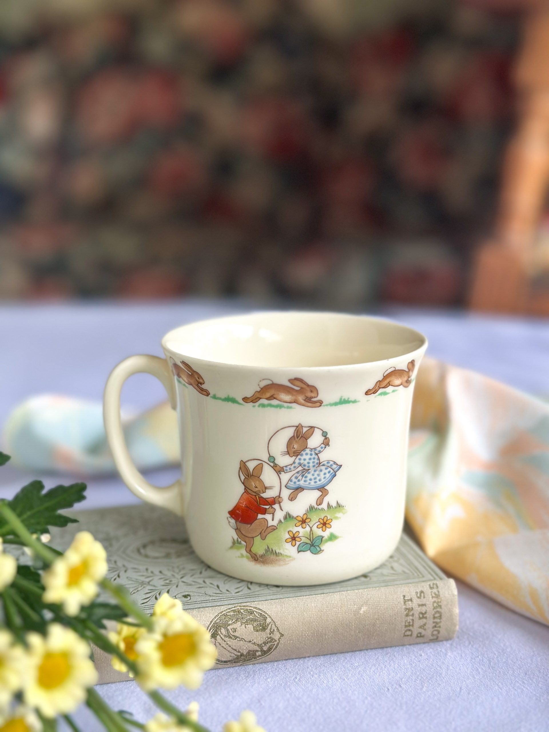 Une superbe tasse vintage en porcelaine anglaise Royal Doulton ! Une pépite de collection, pour les amoureux de cette série Bunnykins. On adore la douceur de ses dessins et l’univers de ces lapins trop mignons.