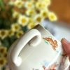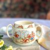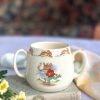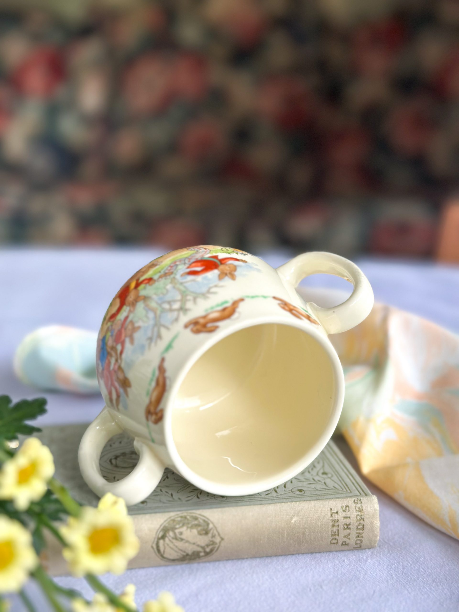 Ce mug ancien a une jolie forme arrondie et deux anses. Il est décoré sur les deux côtés, avec de jolis lapins en liseré.