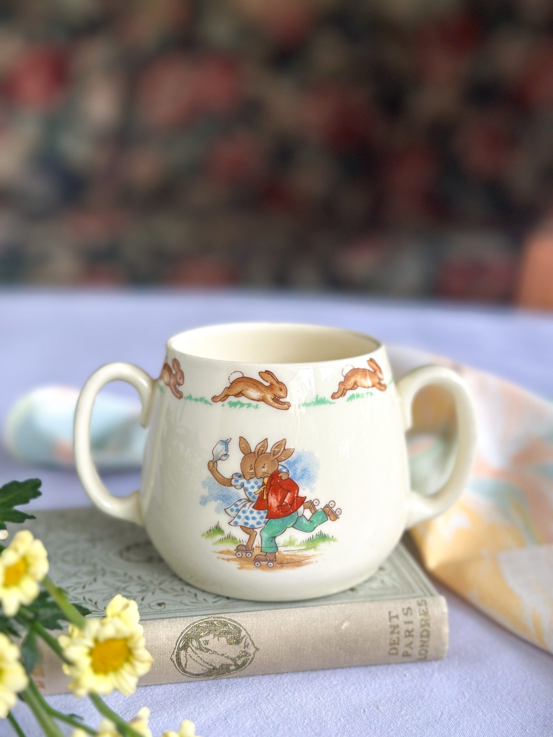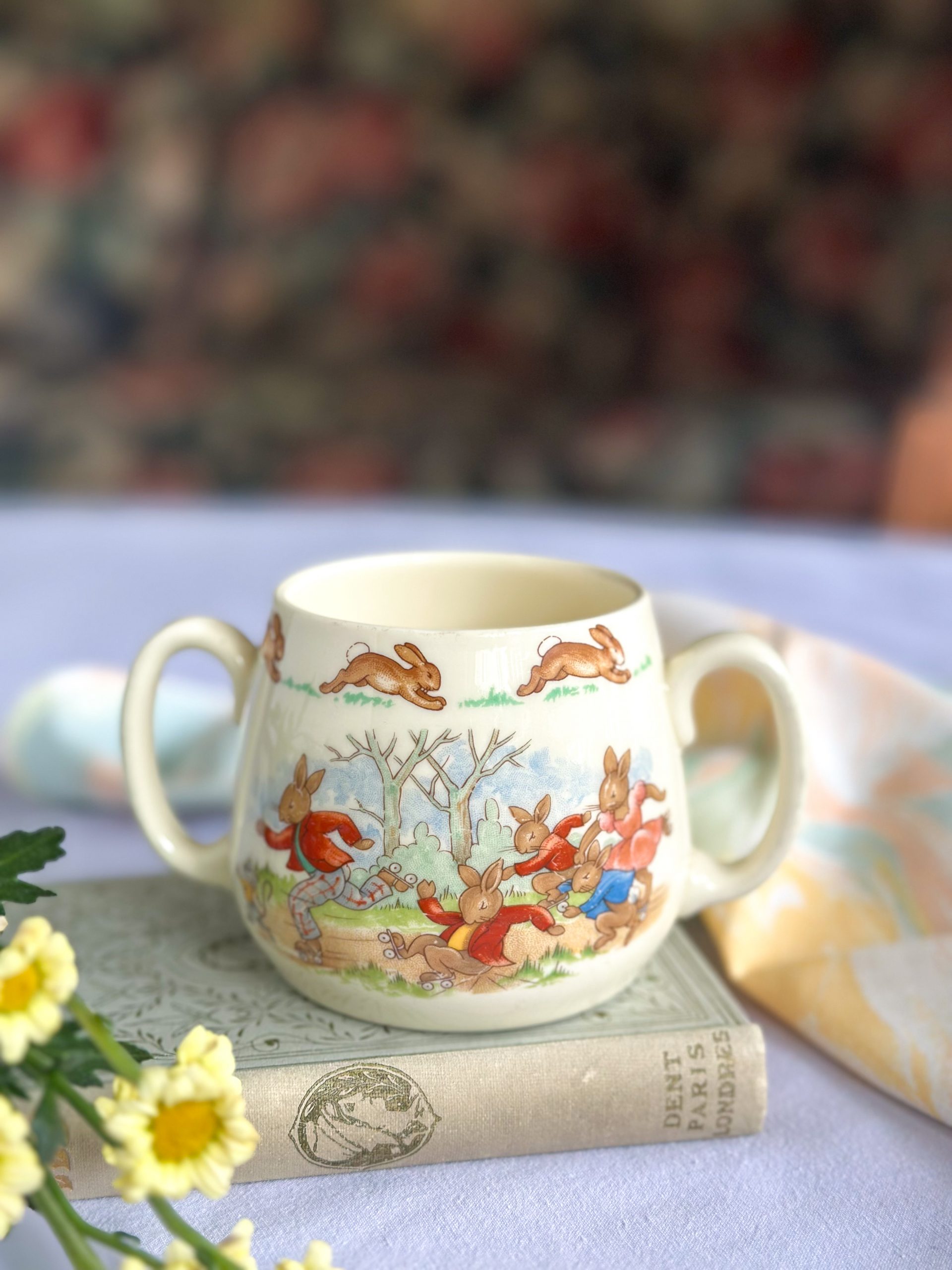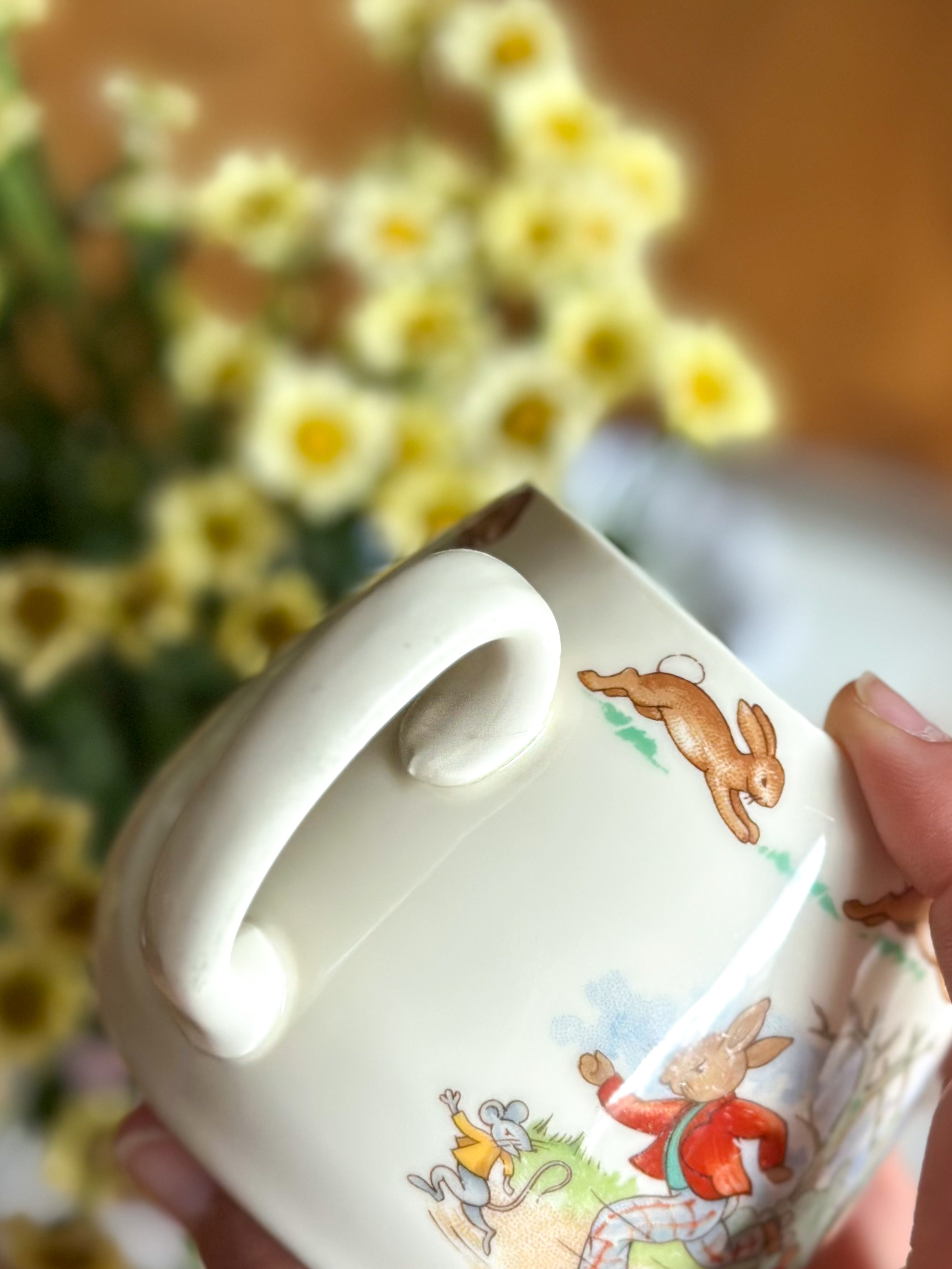 Une superbe tasse vintage en porcelaine anglaise Royal Doulton ! Une pépite de collection, pour les amoureux de cette série Bunnykins. On adore la douceur de ses dessins et l’univers de ces lapins trop mignons.