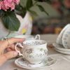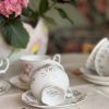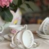 Coup de cœur ! Cette tasse Chantilly en porcelaine anglaise est notre coup de coeur de la semaine, avec ses magnifiques motifs floraux mauves et violets, aux tons si doux. On adore la finesse de sa porcelaine et l’élégance de sa forme sur pied. Sa anse avec dorures est magnifique.