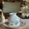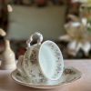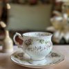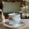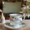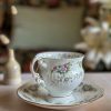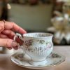 Enorme coup de coeur pour cette tasse Chantilly ! En porcelaine anglaise, avec ses magnifiques motifs floraux mauves et violets, on craque pour ses tons si doux. On adore la finesse de sa porcelaine et l’élégance de sa forme sur pied. Sa anse avec dorures est magnifique.