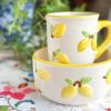 Coup de coeur pour cette tasse Citrons ! On adore sa forme large et sa jolie céramique blanche, réhaussée de citrons en relief et liserés jaunes. Une vraie tasse chouchou pour vos petit-déjeuners, ou vos pauses thé / café de cette saison printemps-été !