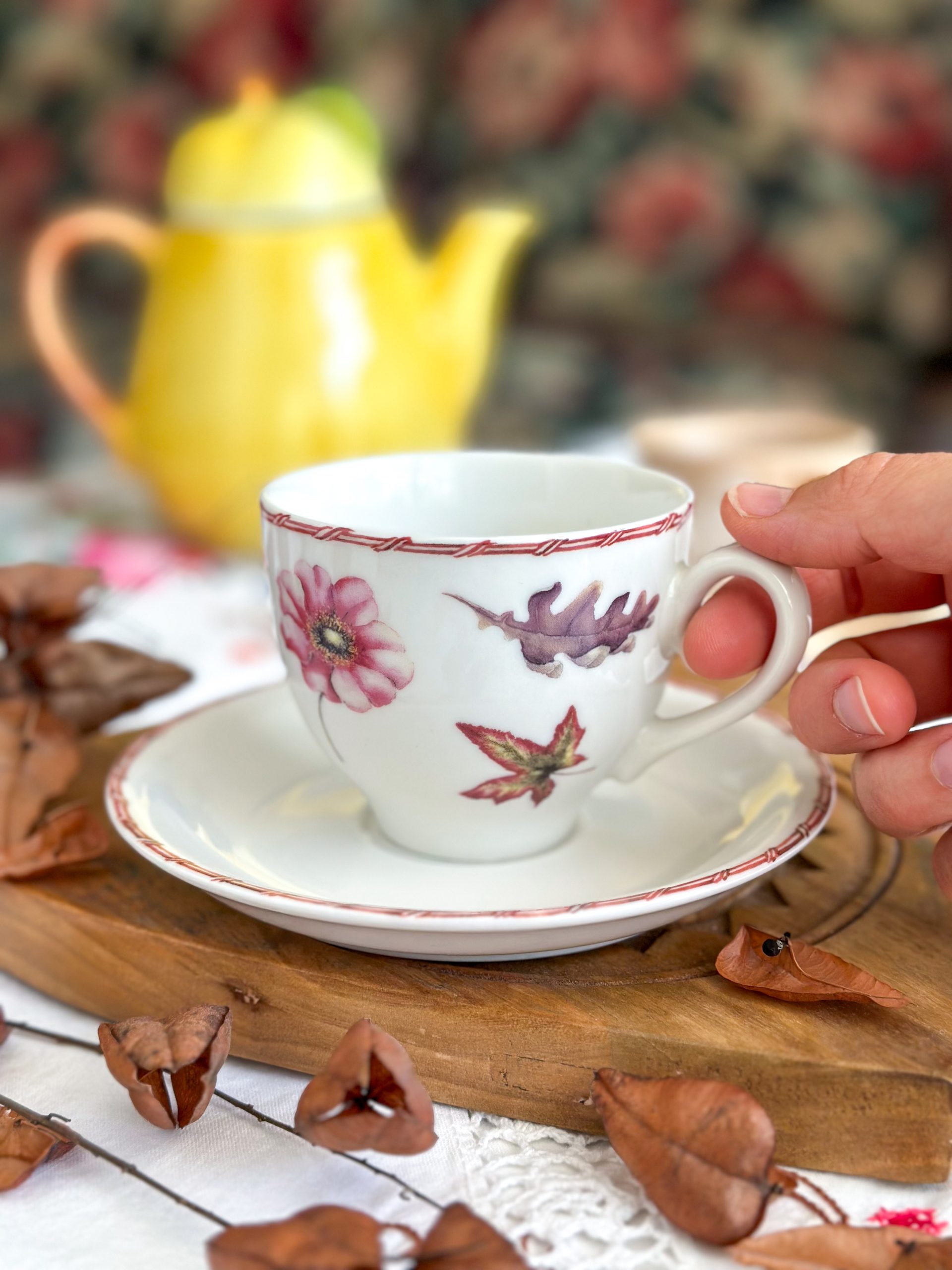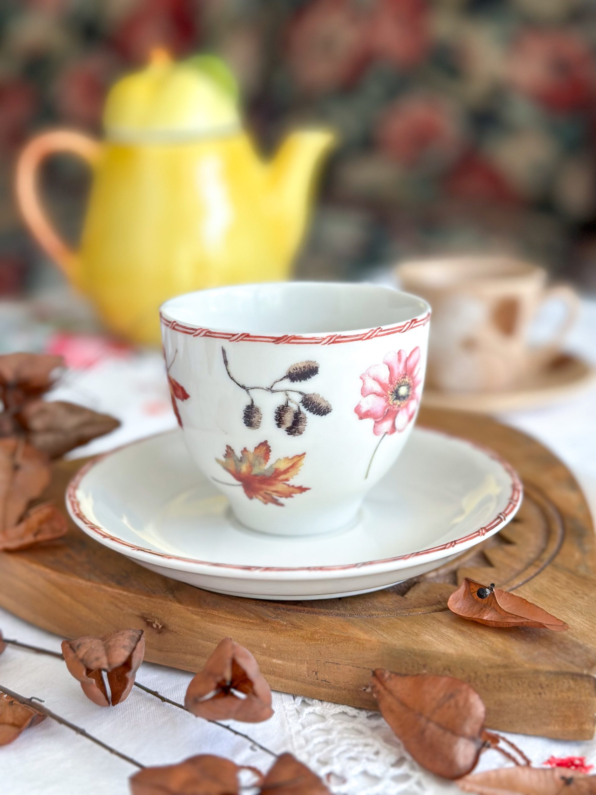 Très belle tasse au décor automnal ! On adore cette série autour des saisons, ici la tasse pour accueillir l’Automne avec ses feuilles et baies aux tons chauds. Le petit plus : la feuille d’érable cachée sur la sous-tasse ! Une tasse chouchou pour de jolies pauses thé ou café.
